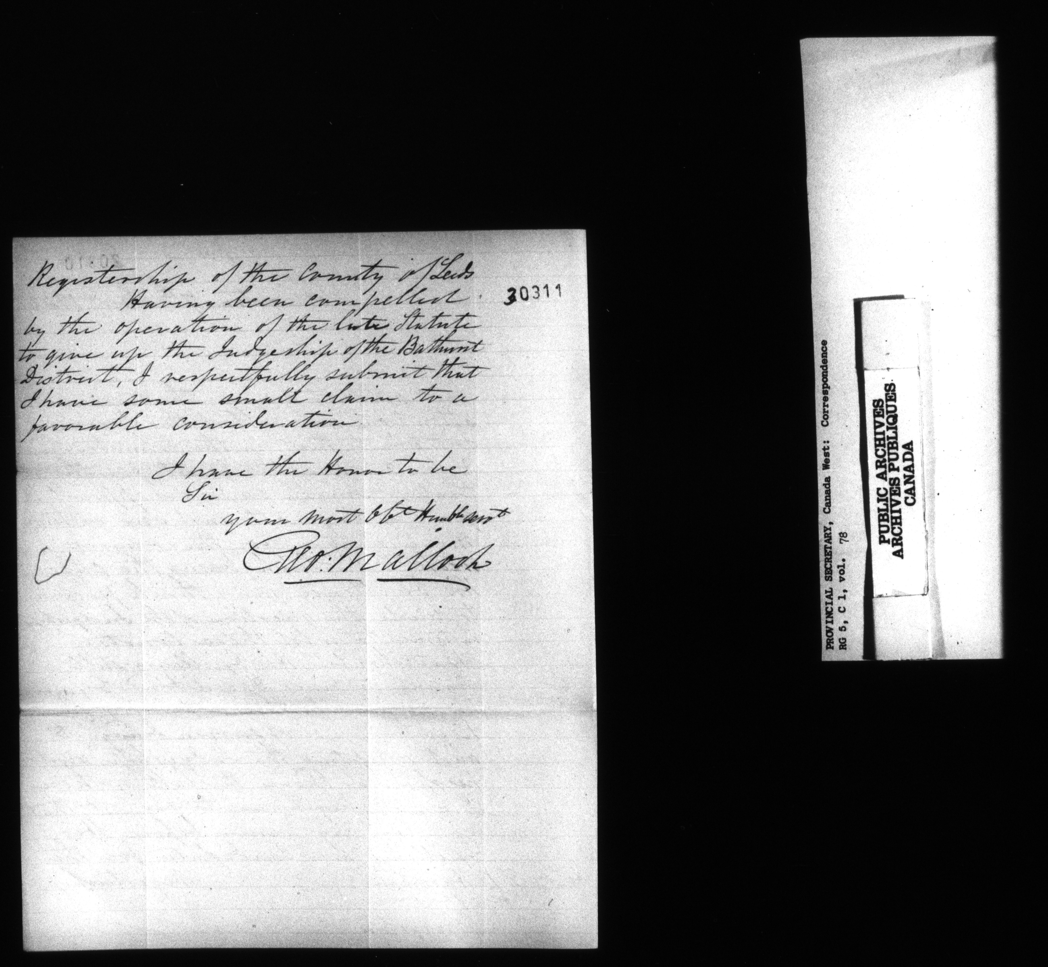 RG 5 C1, Provincial Secretary, Correspondence, Canada West - 13567