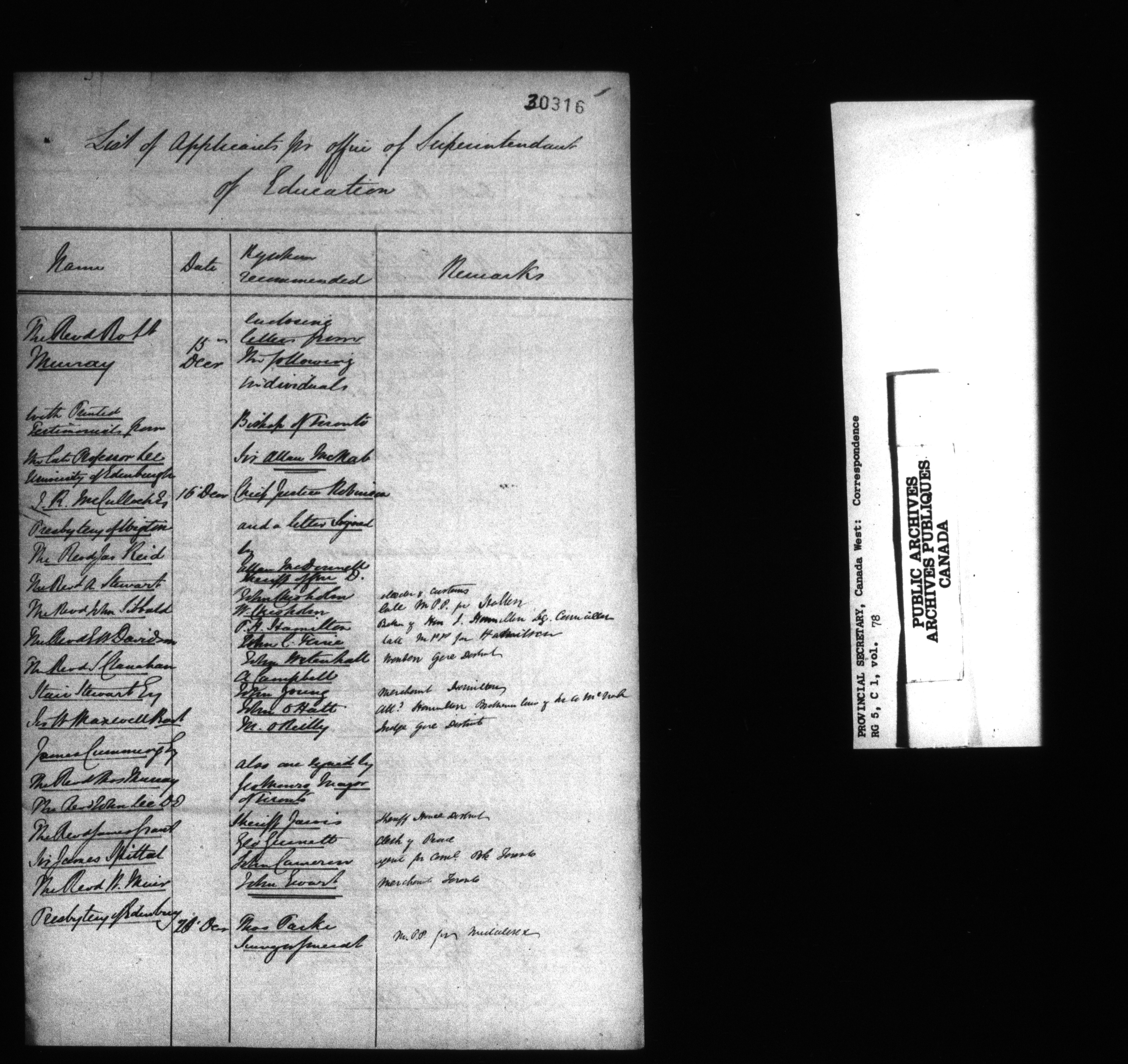 RG 5 C1, Provincial Secretary, Correspondence, Canada West - 13567