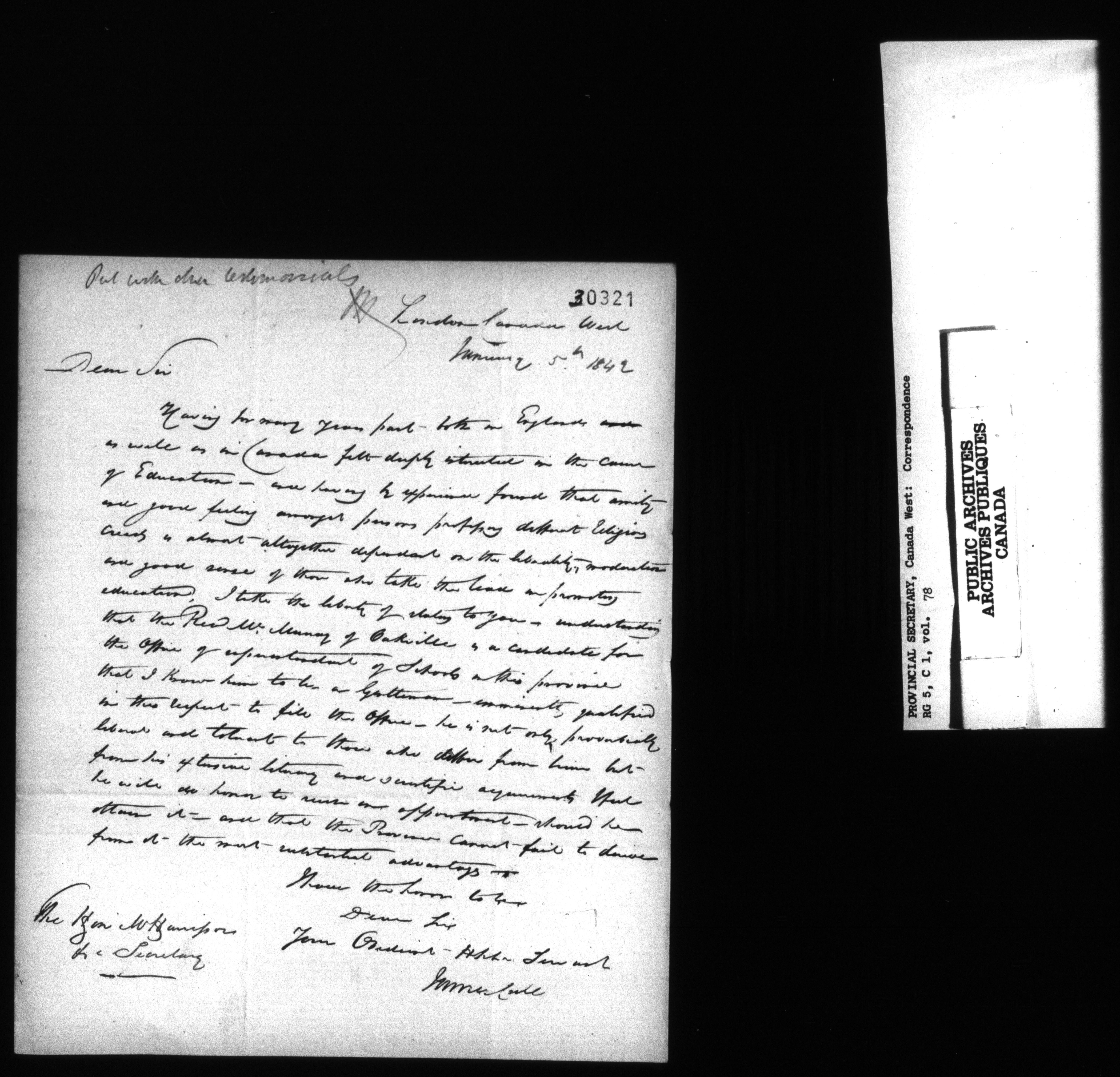 RG 5 C1, Provincial Secretary, Correspondence, Canada West - 13567