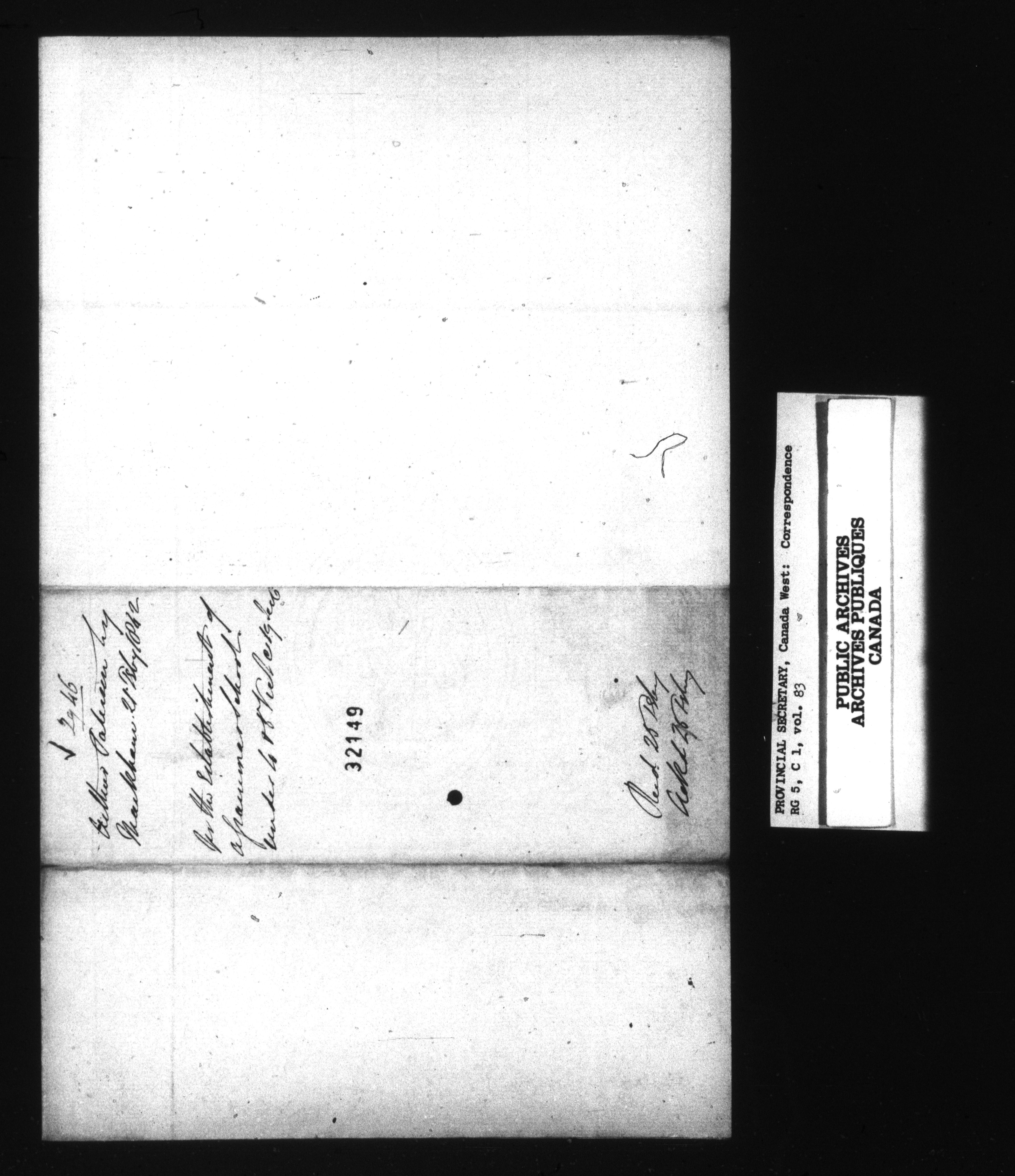 RG 5 C1, Provincial Secretary, Correspondence, Canada West - 13568