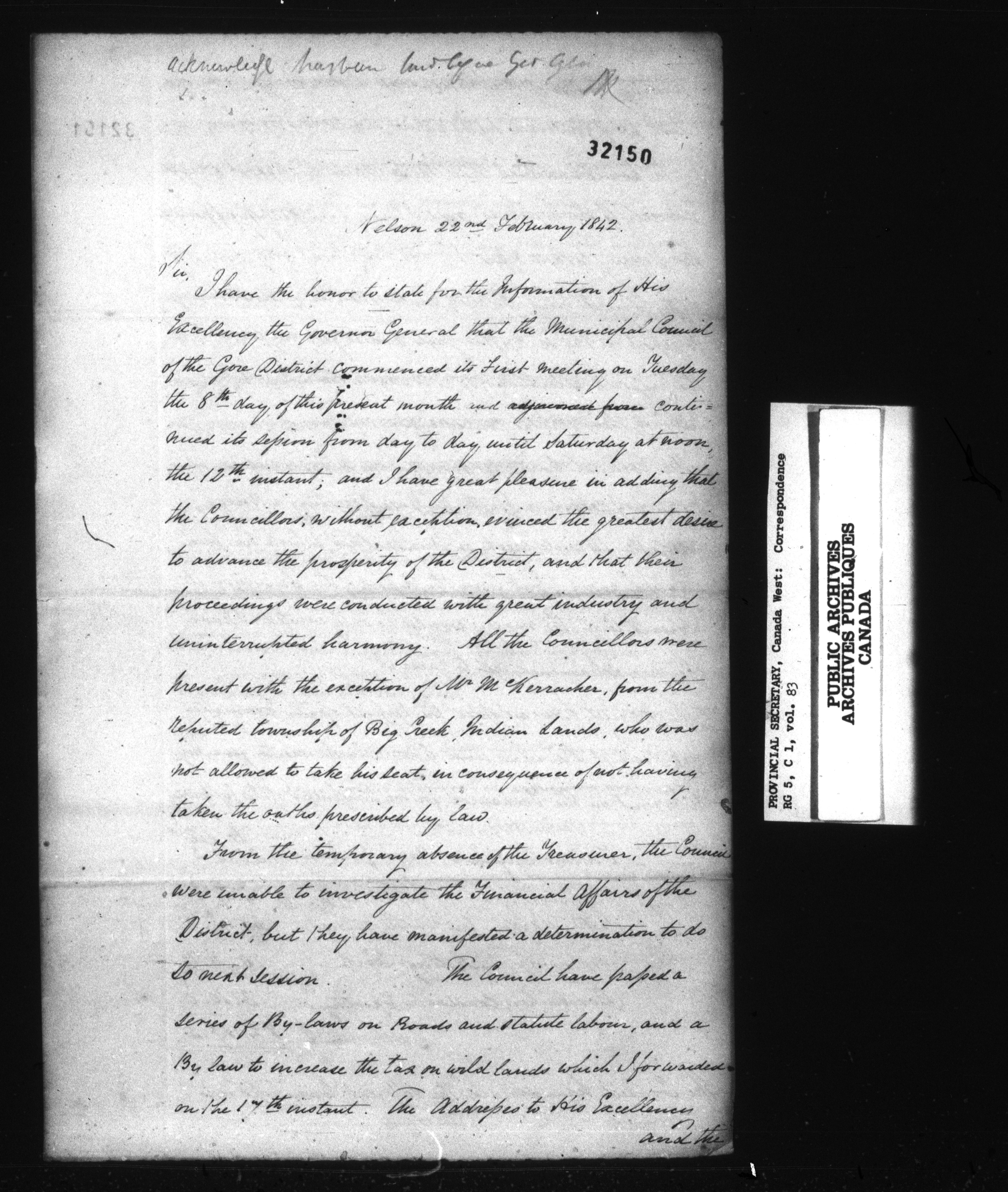 Canada West : Provincial Secretary, numbered correspondence files, 1844 to 1867 : C-13568