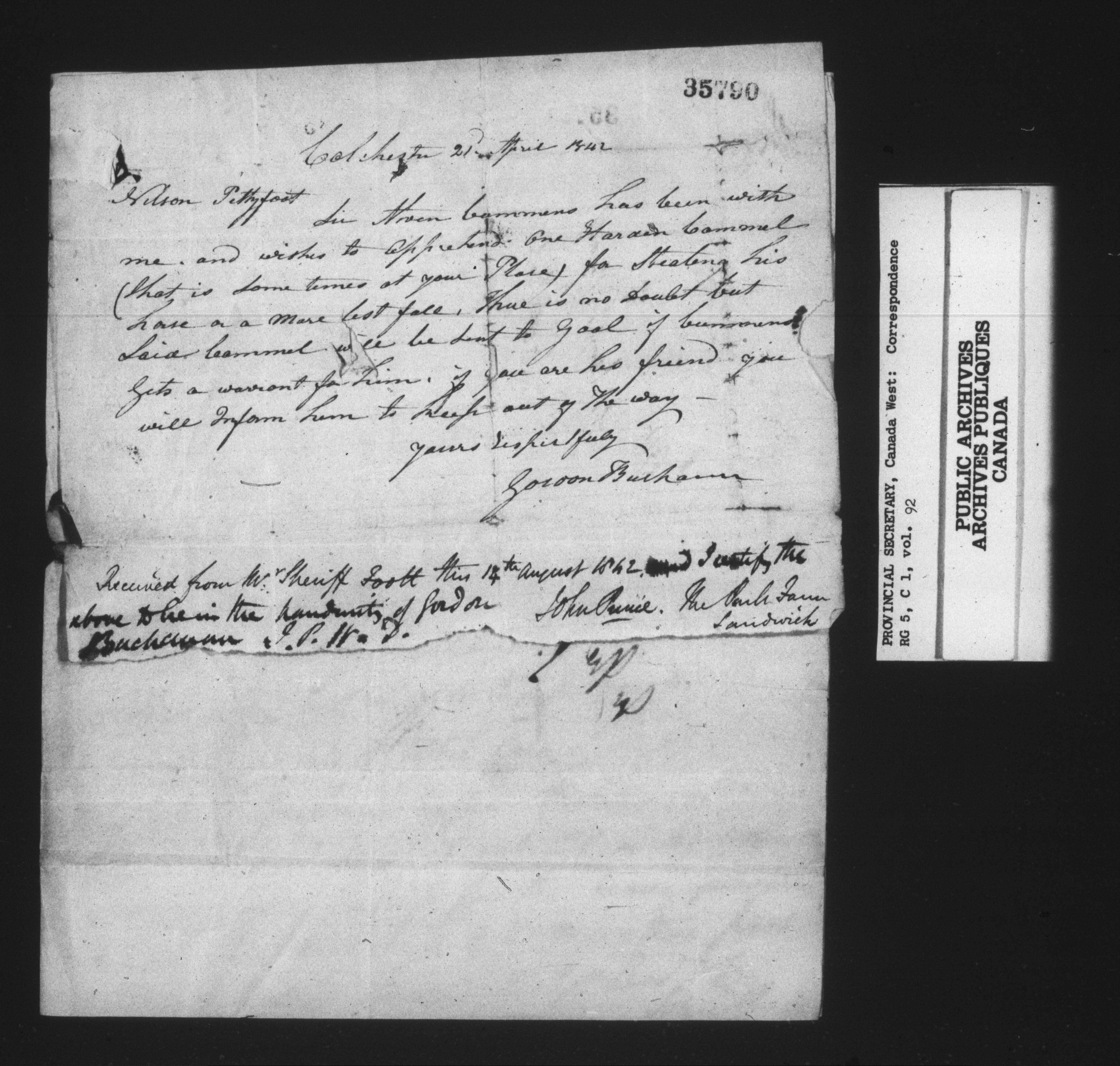 RG 5 C1, Provincial Secretary, Correspondence, Canada West - 13570