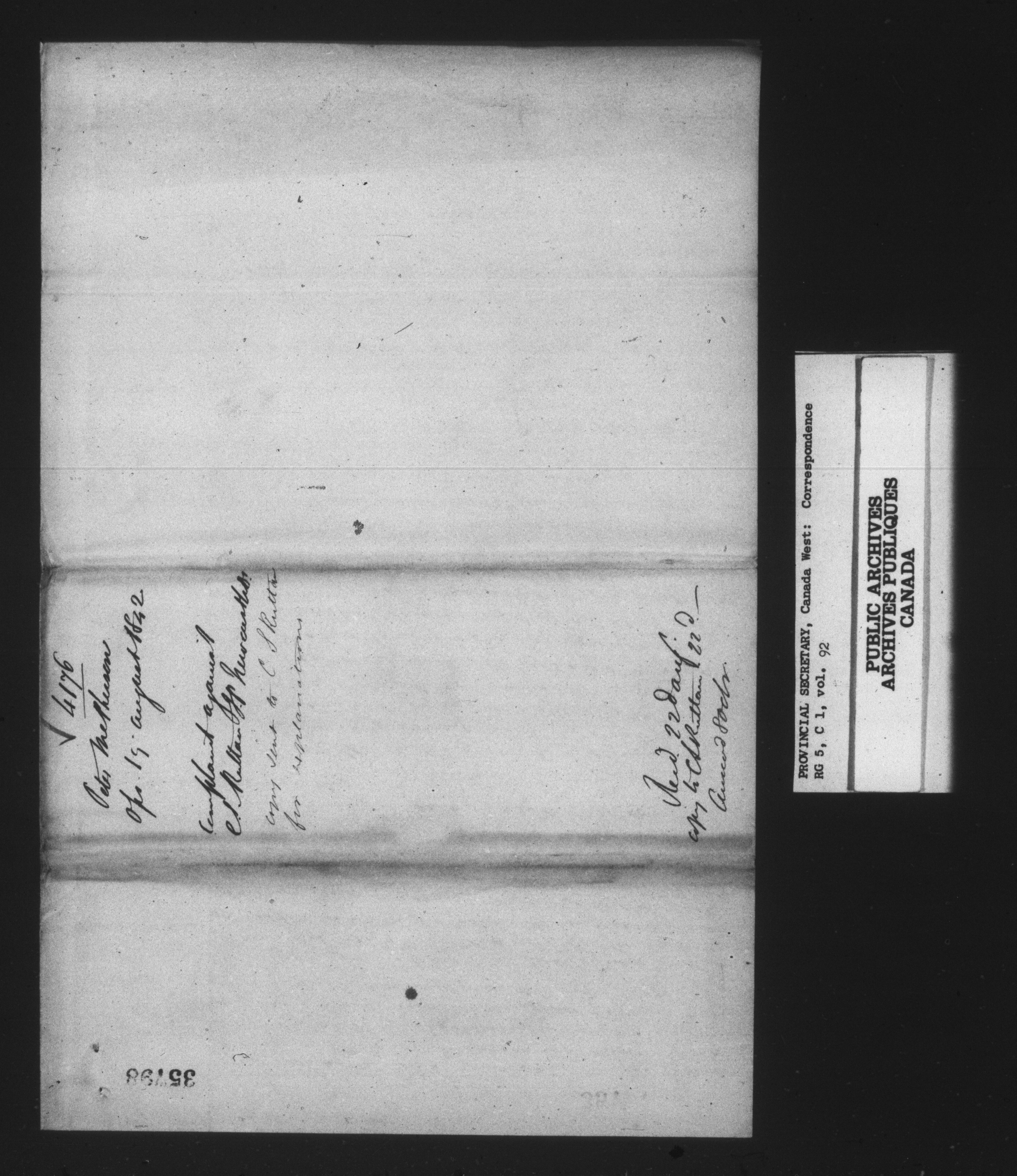 RG 5 C1, Provincial Secretary, Correspondence, Canada West - 13570