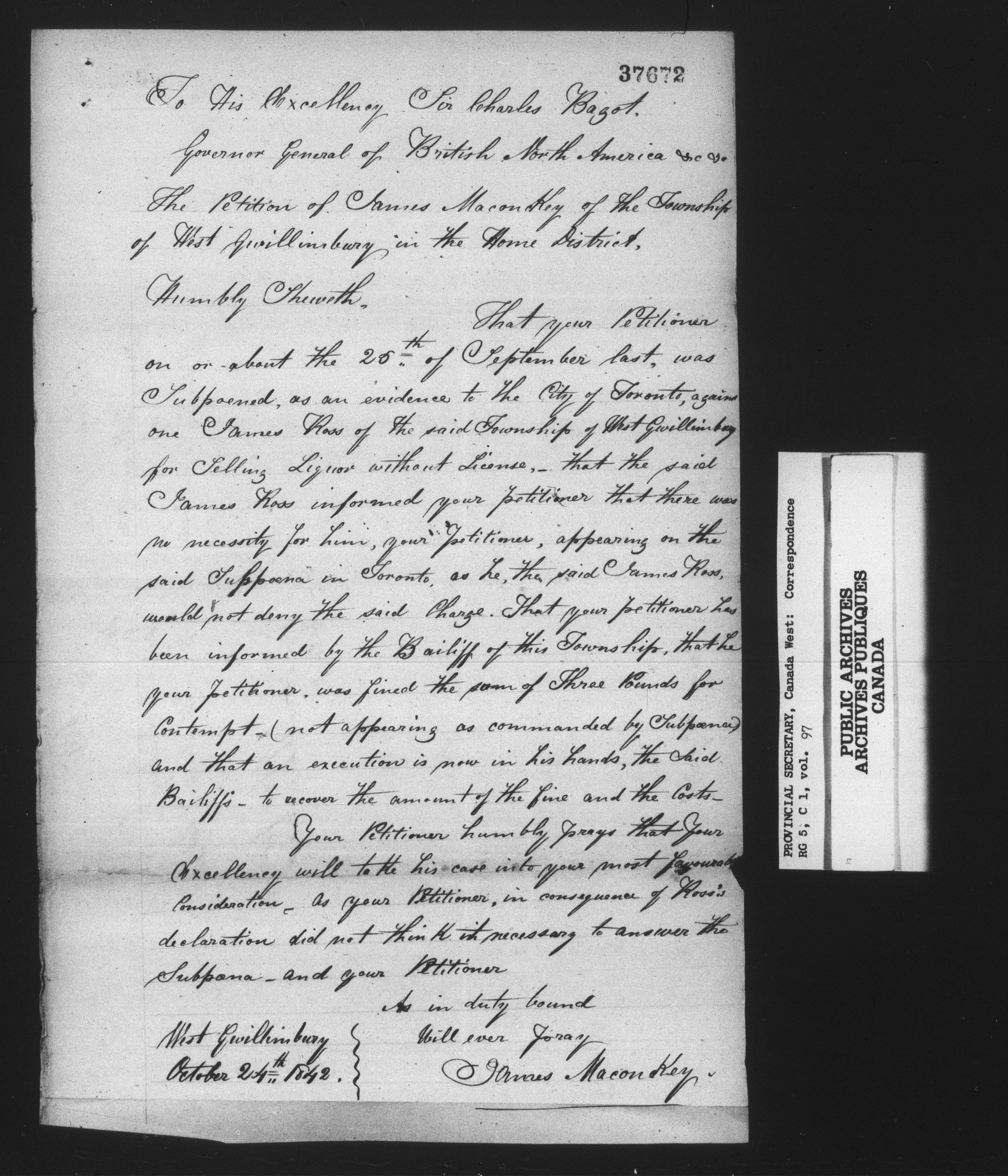 RG 5 C1, Provincial Secretary, Correspondence, Canada West - 13572