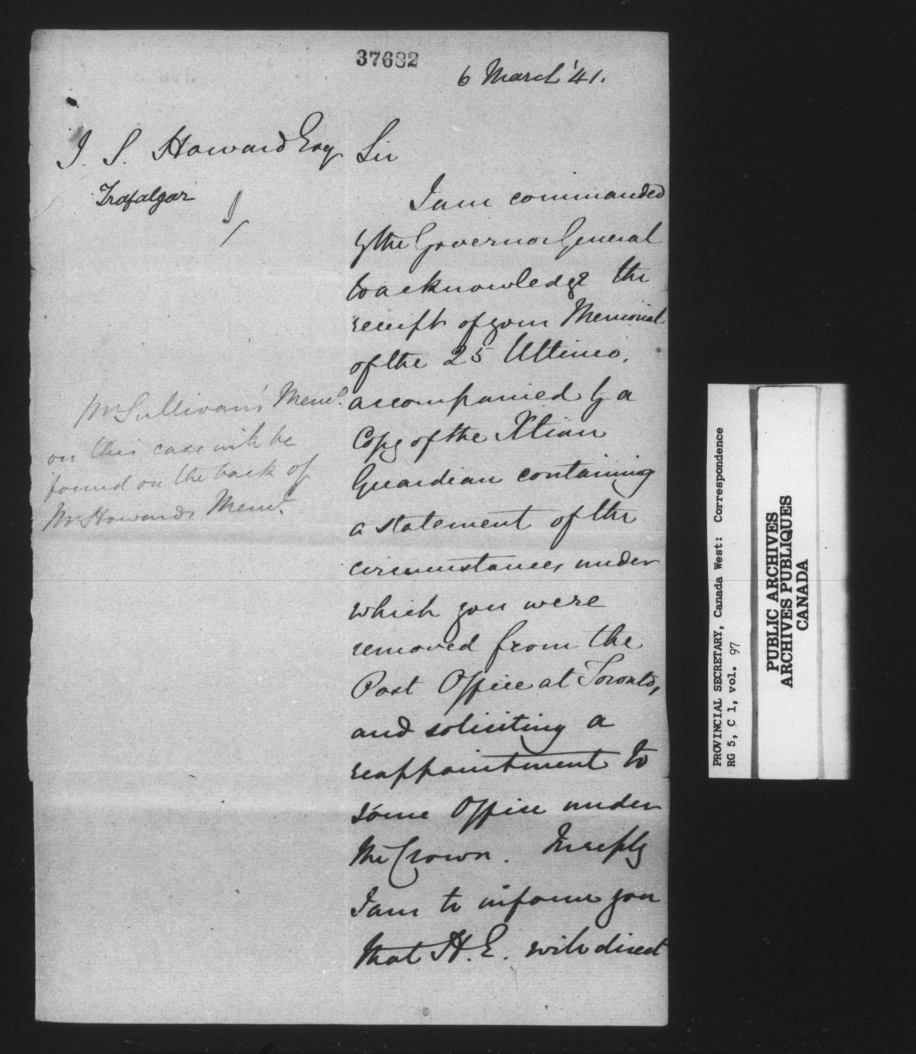 RG 5 C1, Provincial Secretary, Correspondence, Canada West - 13572