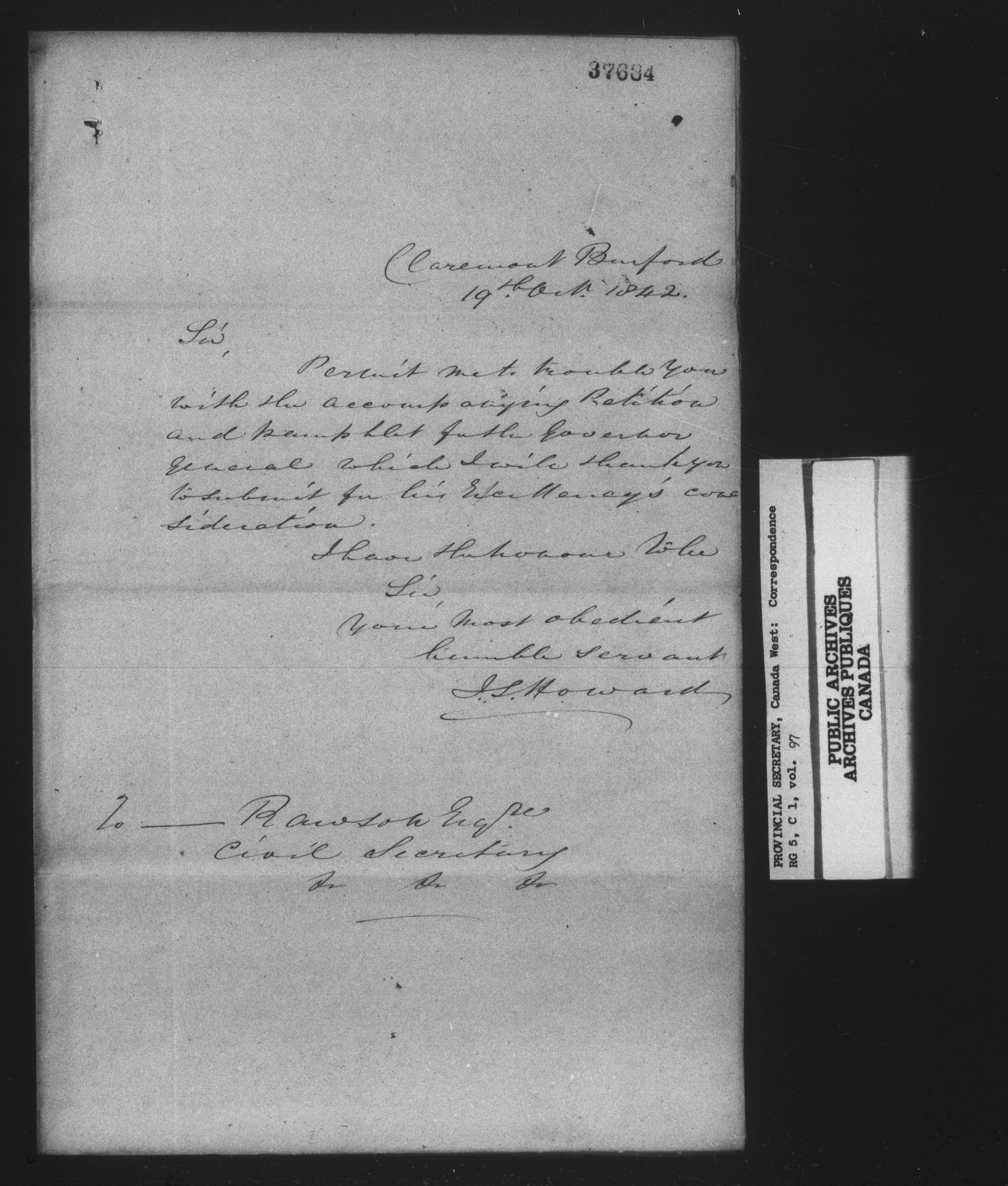 RG 5 C1, Provincial Secretary, Correspondence, Canada West - 13572