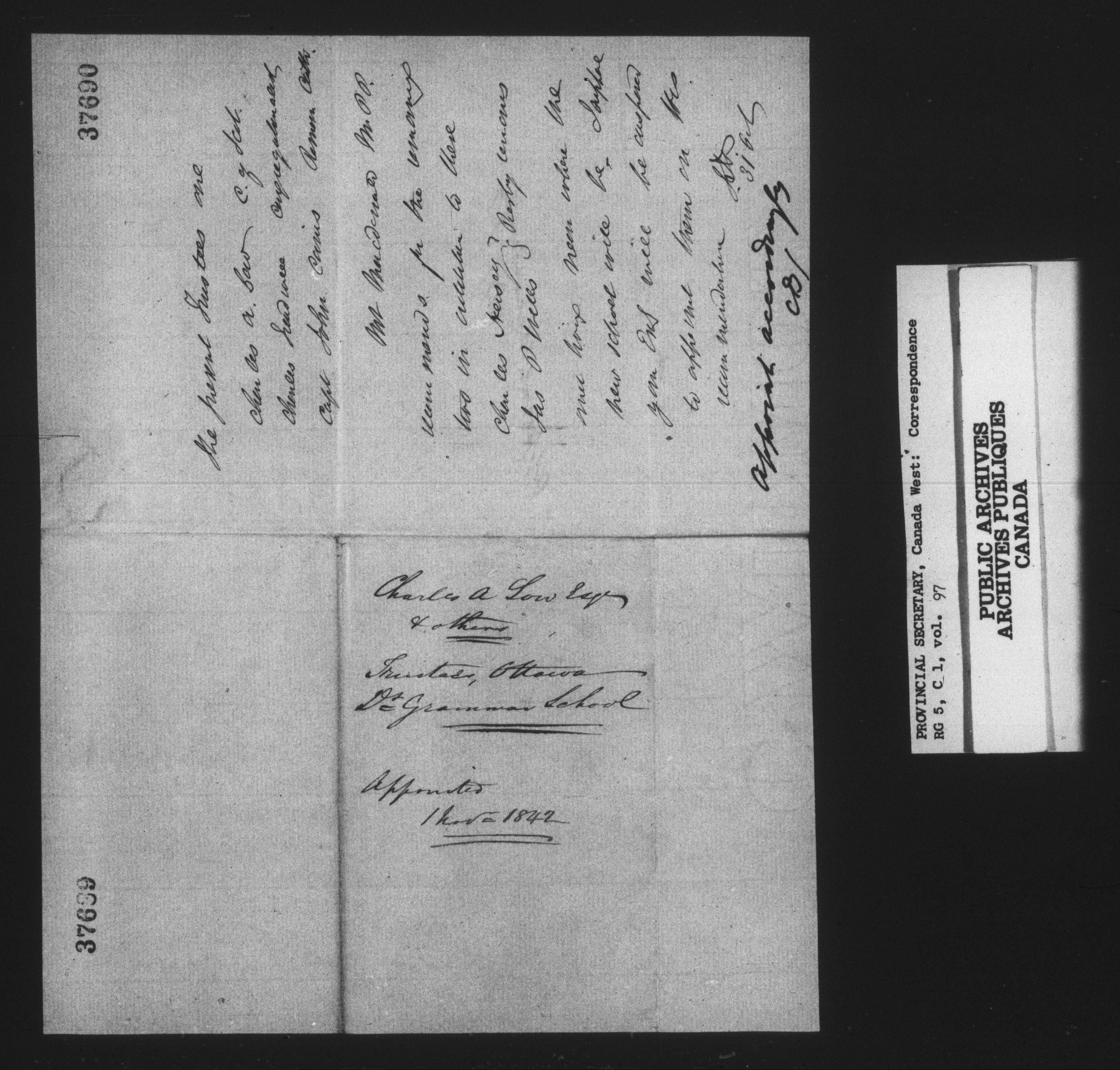 RG 5 C1, Provincial Secretary, Correspondence, Canada West - 13572
