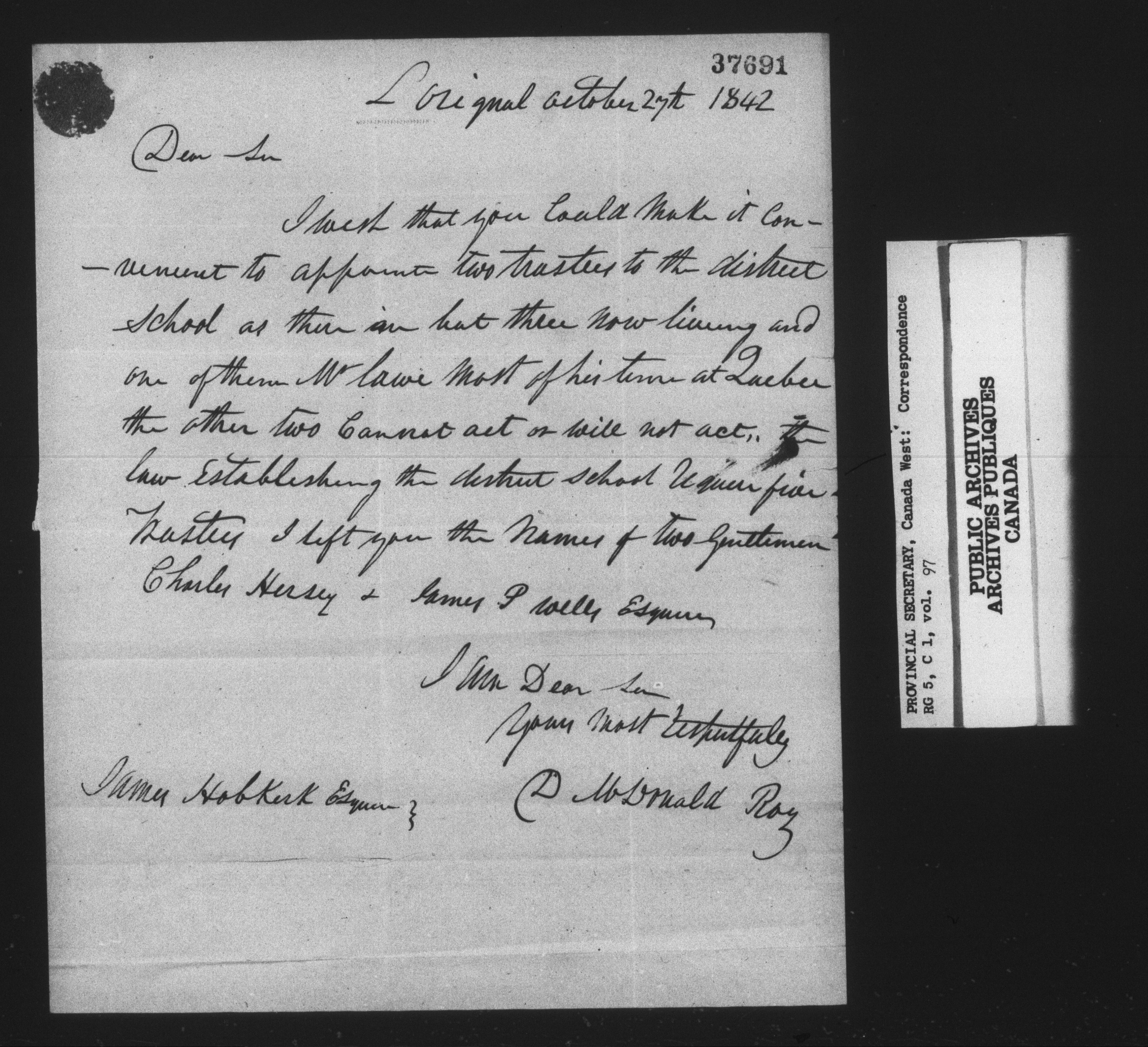 RG 5 C1, Provincial Secretary, Correspondence, Canada West - 13572