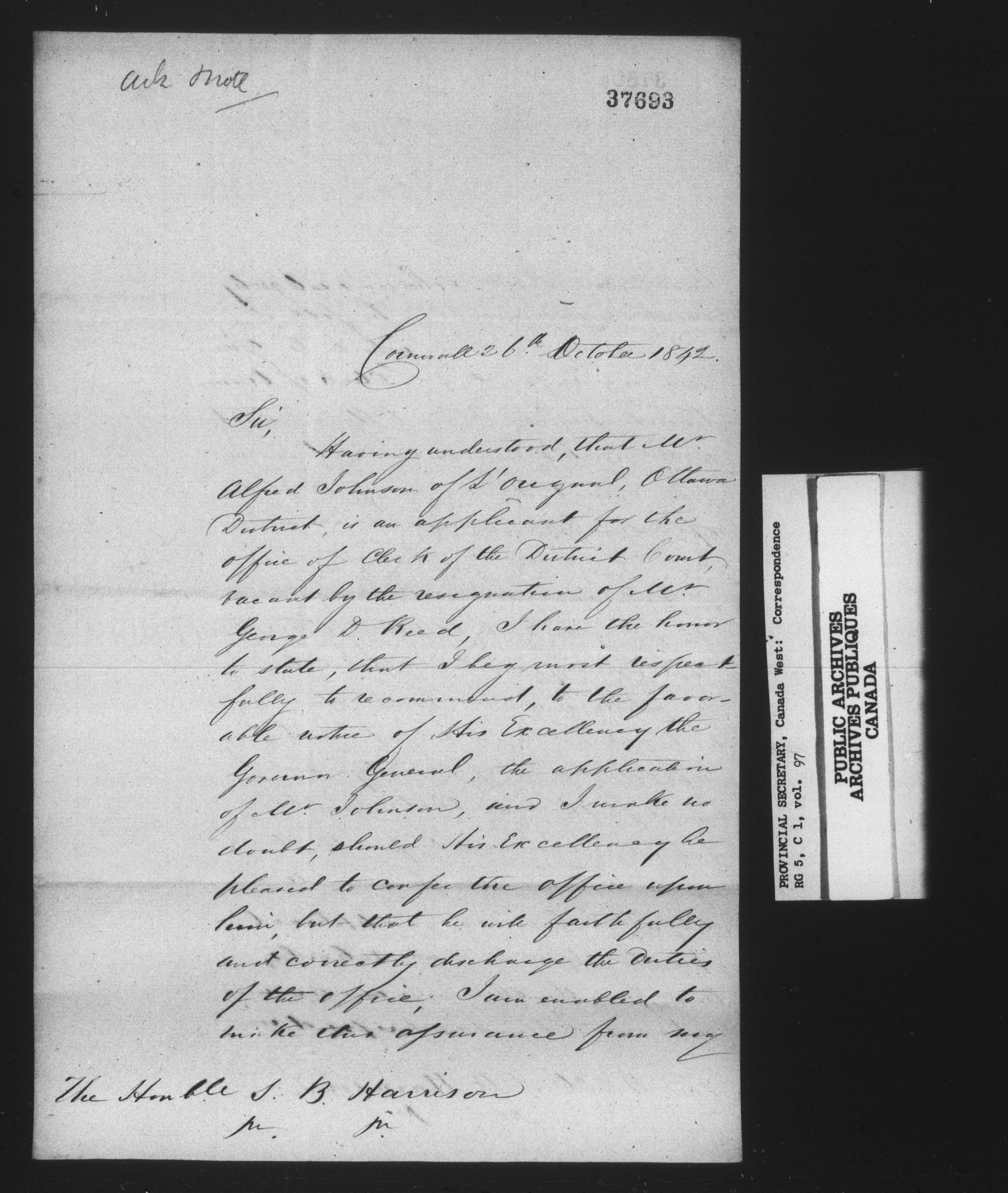 RG 5 C1, Provincial Secretary, Correspondence, Canada West - 13572