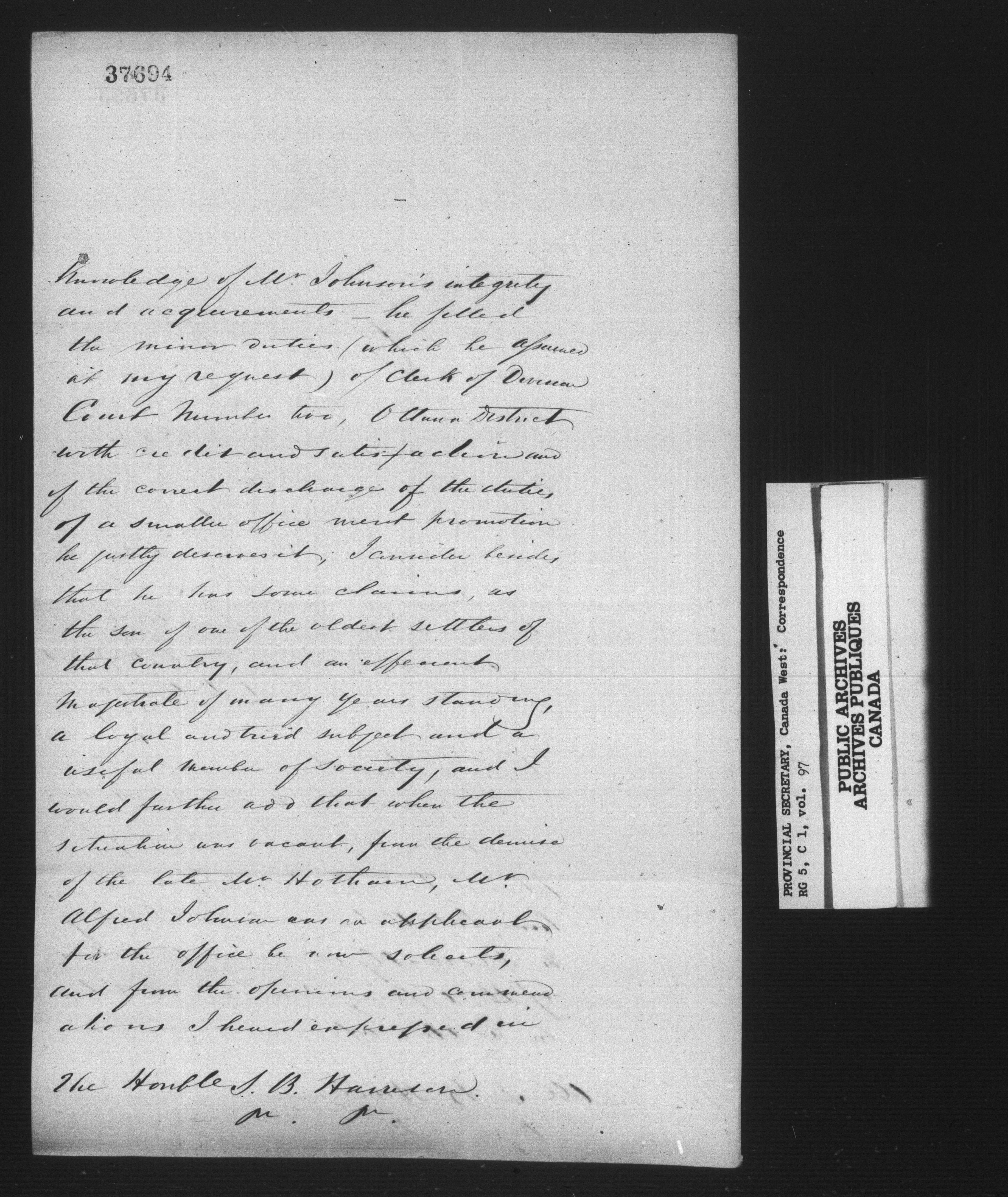 RG 5 C1, Provincial Secretary, Correspondence, Canada West - 13572