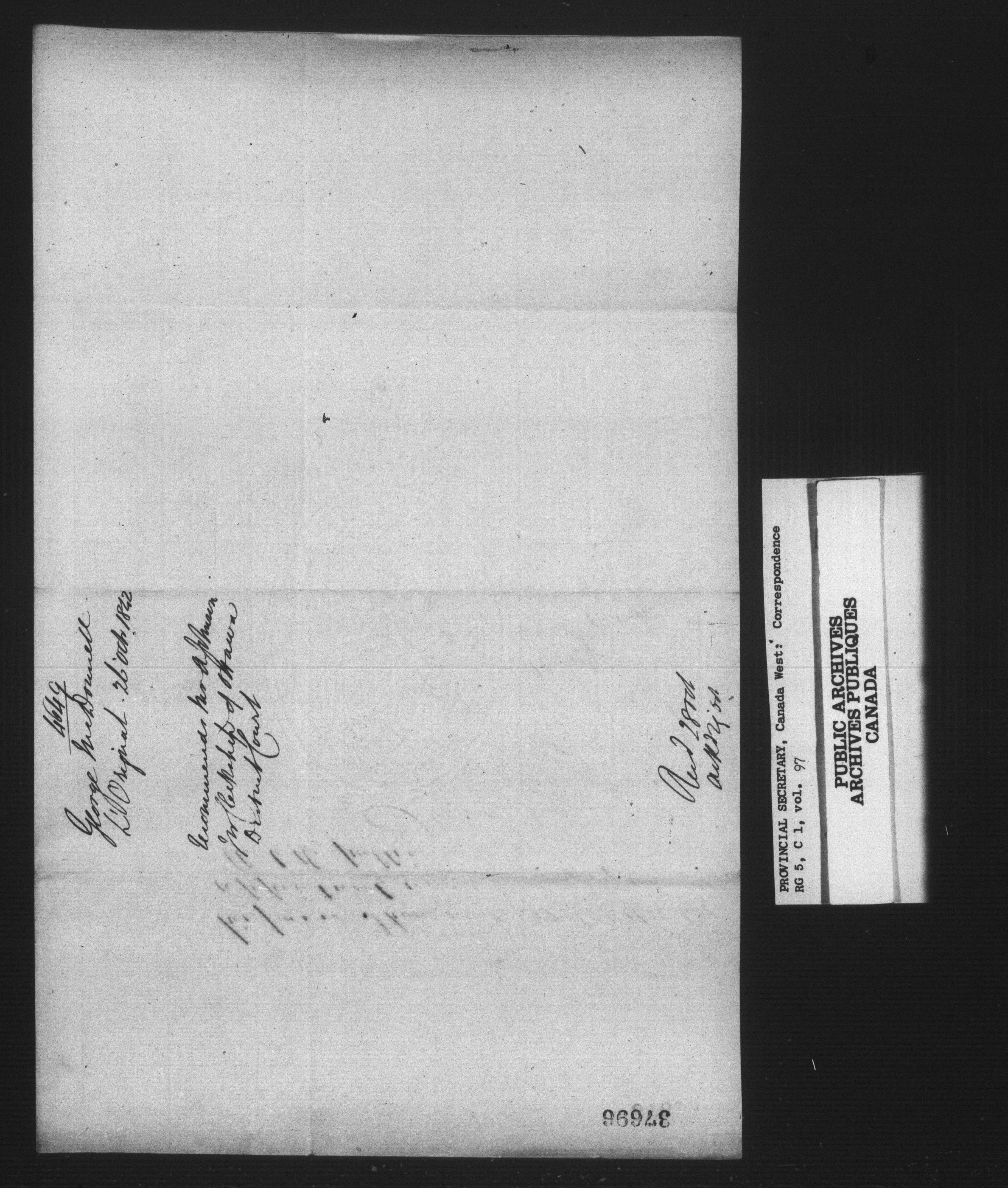 RG 5 C1, Provincial Secretary, Correspondence, Canada West - 13572