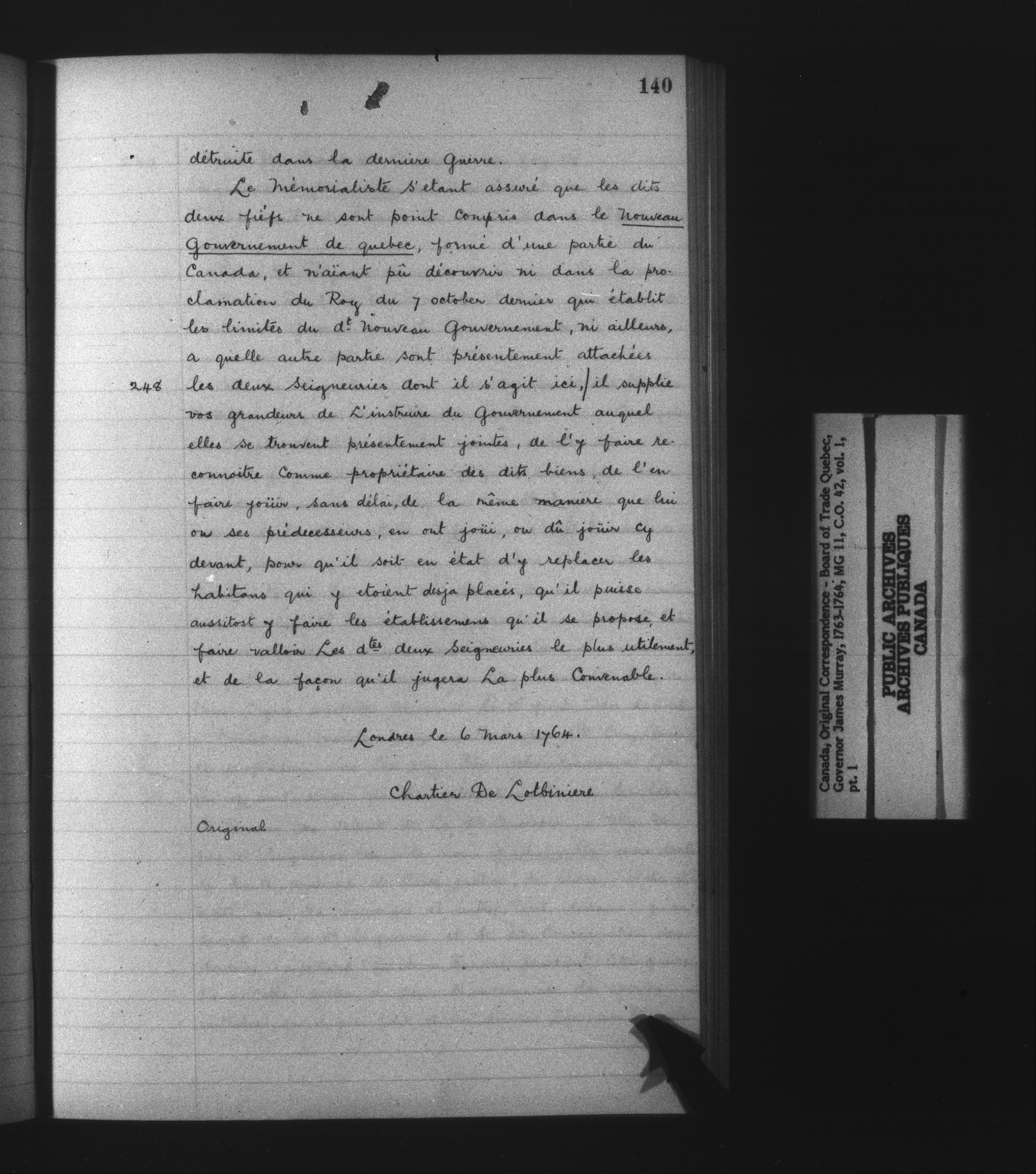 Great Britain : Public Record Office, Colonial Office 42, Canada; Original Correspondence "Q" Series - 13604