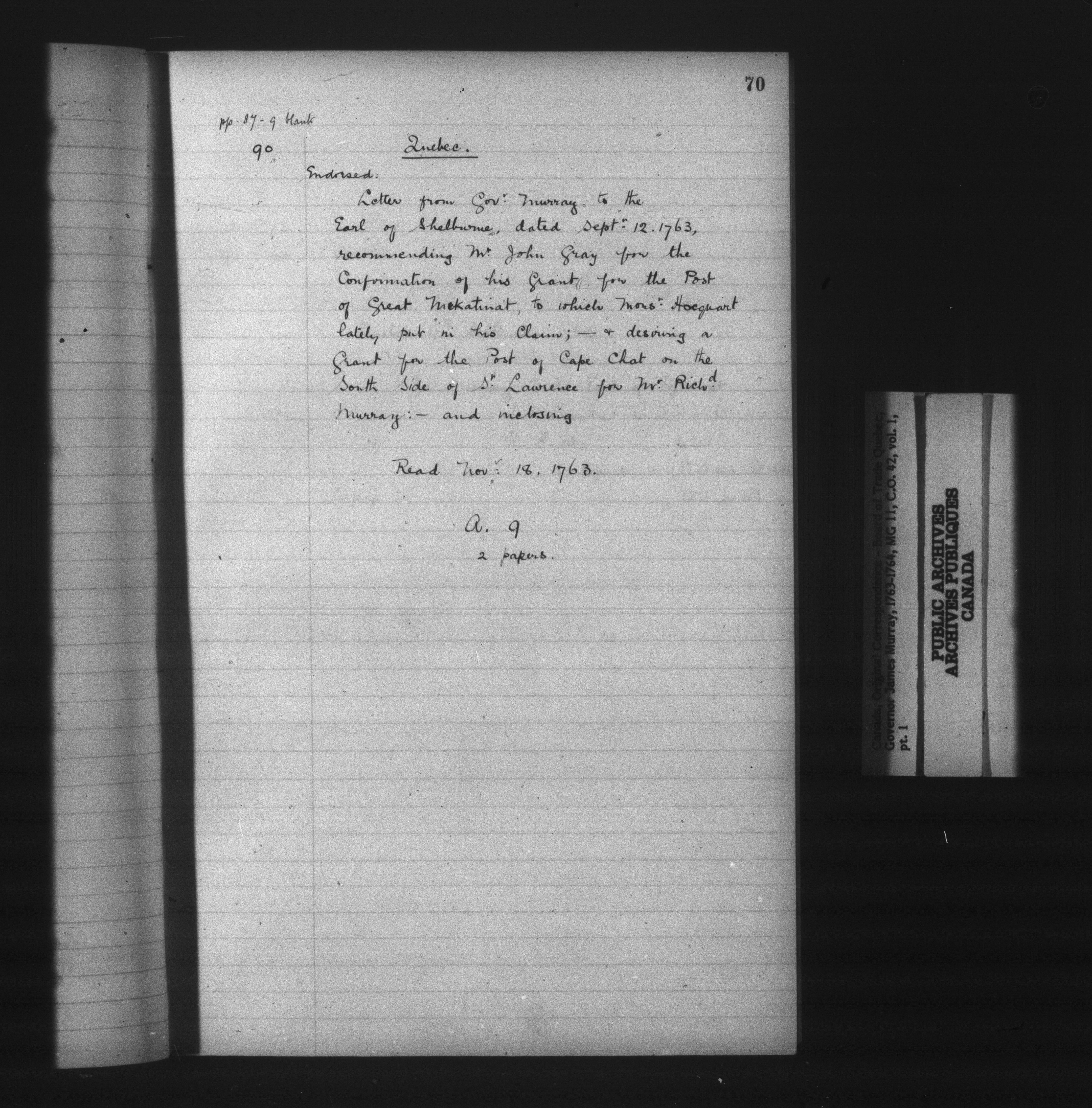 Great Britain : Public Record Office, Colonial Office 42, Canada; Original Correspondence "Q" Series - 13604