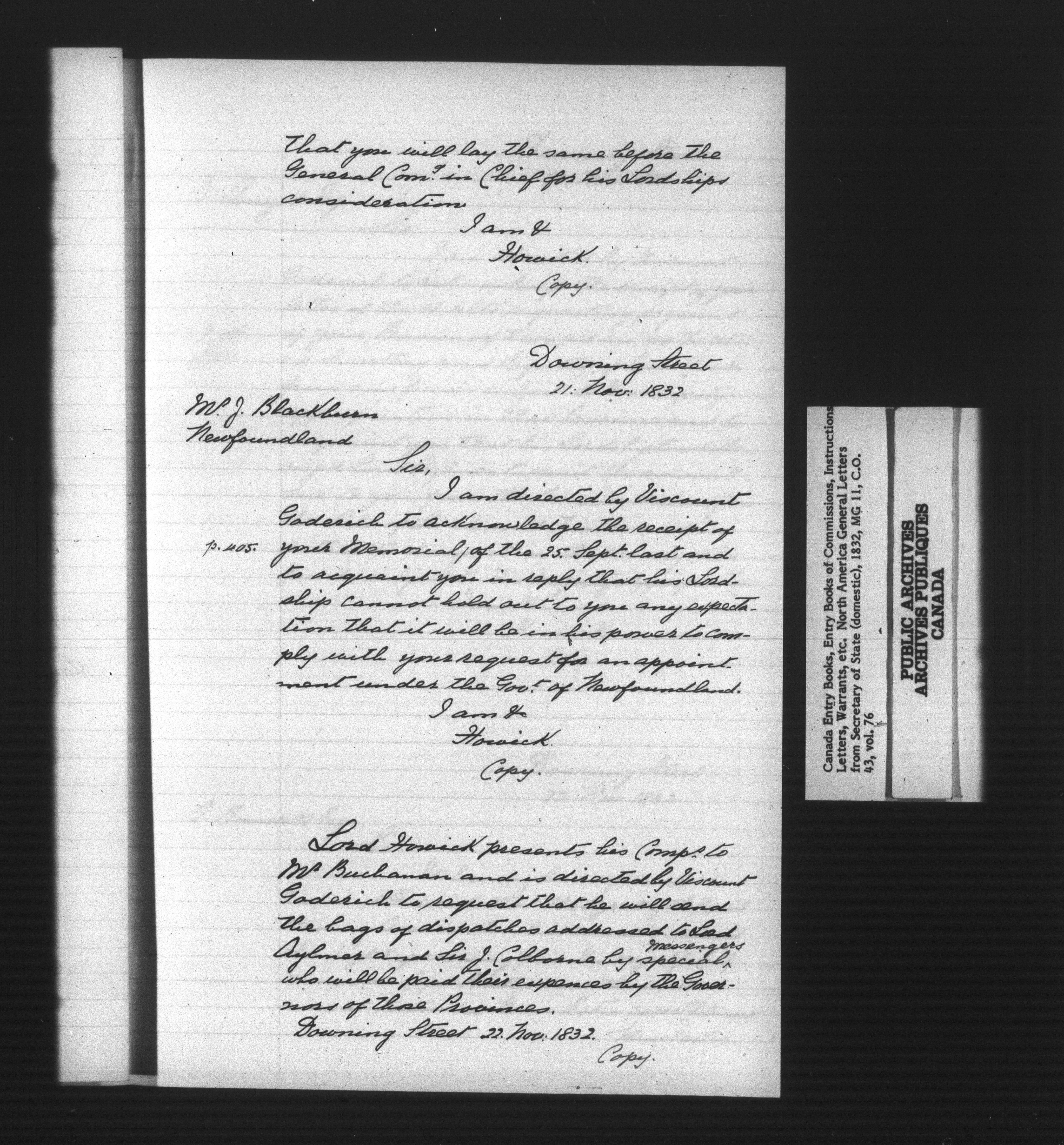 Great Britain. Colonial Office : Canada, formerly British North America, entry books (CO 43) : C-13610