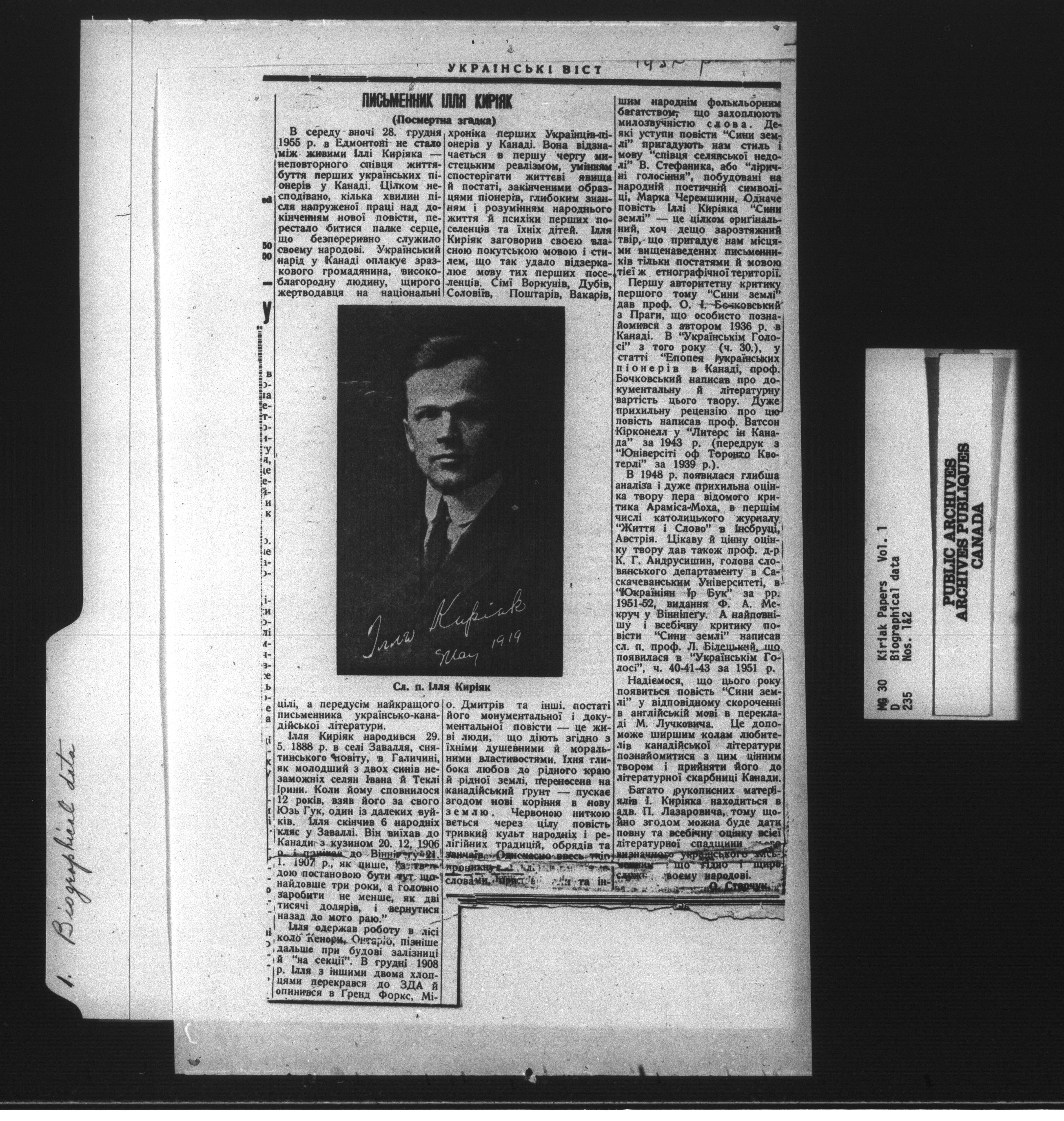 Illia Kiriak fonds : C-13617