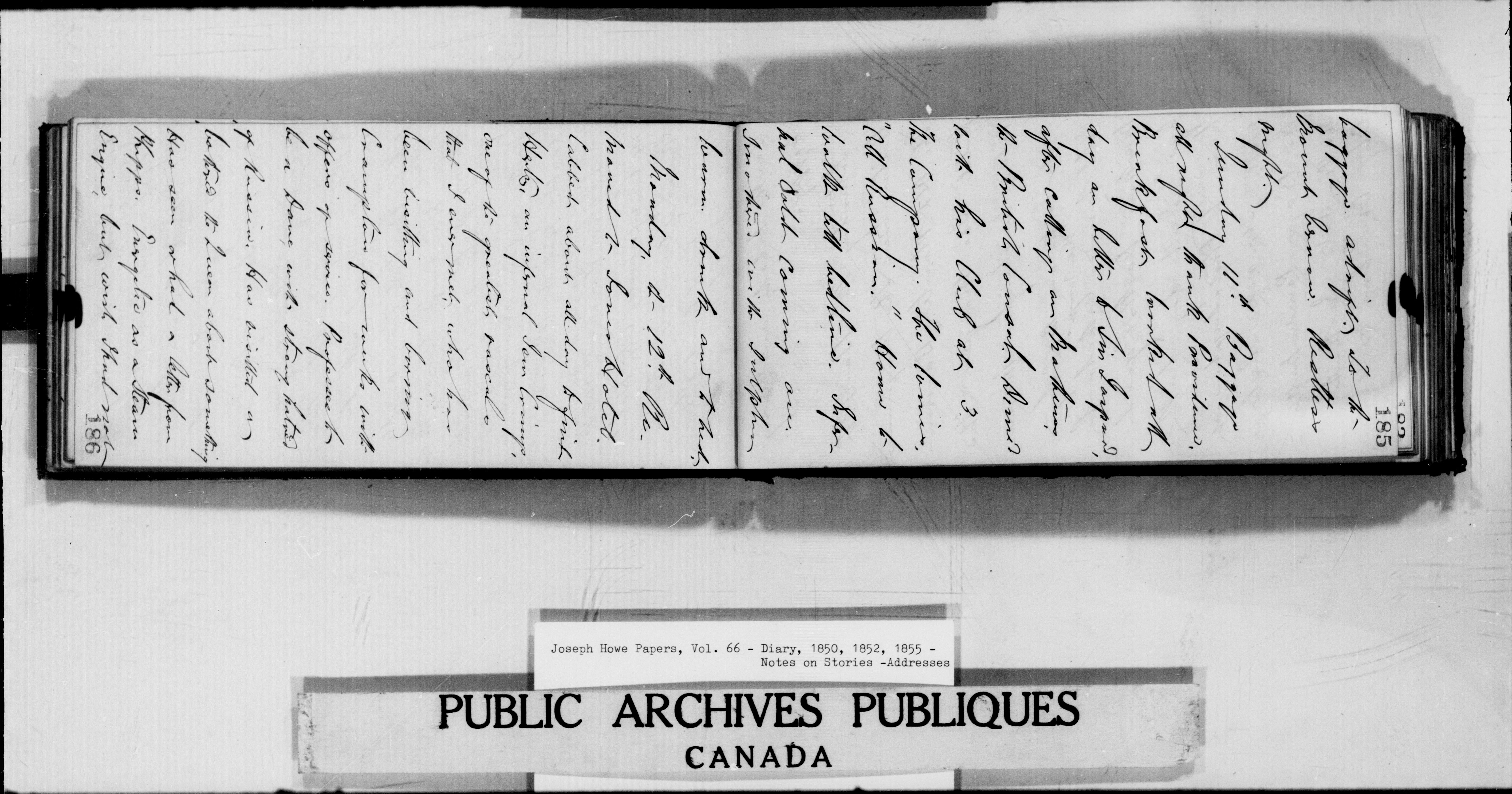 Joseph Howe diaries, memoranda and notebooks - 1365