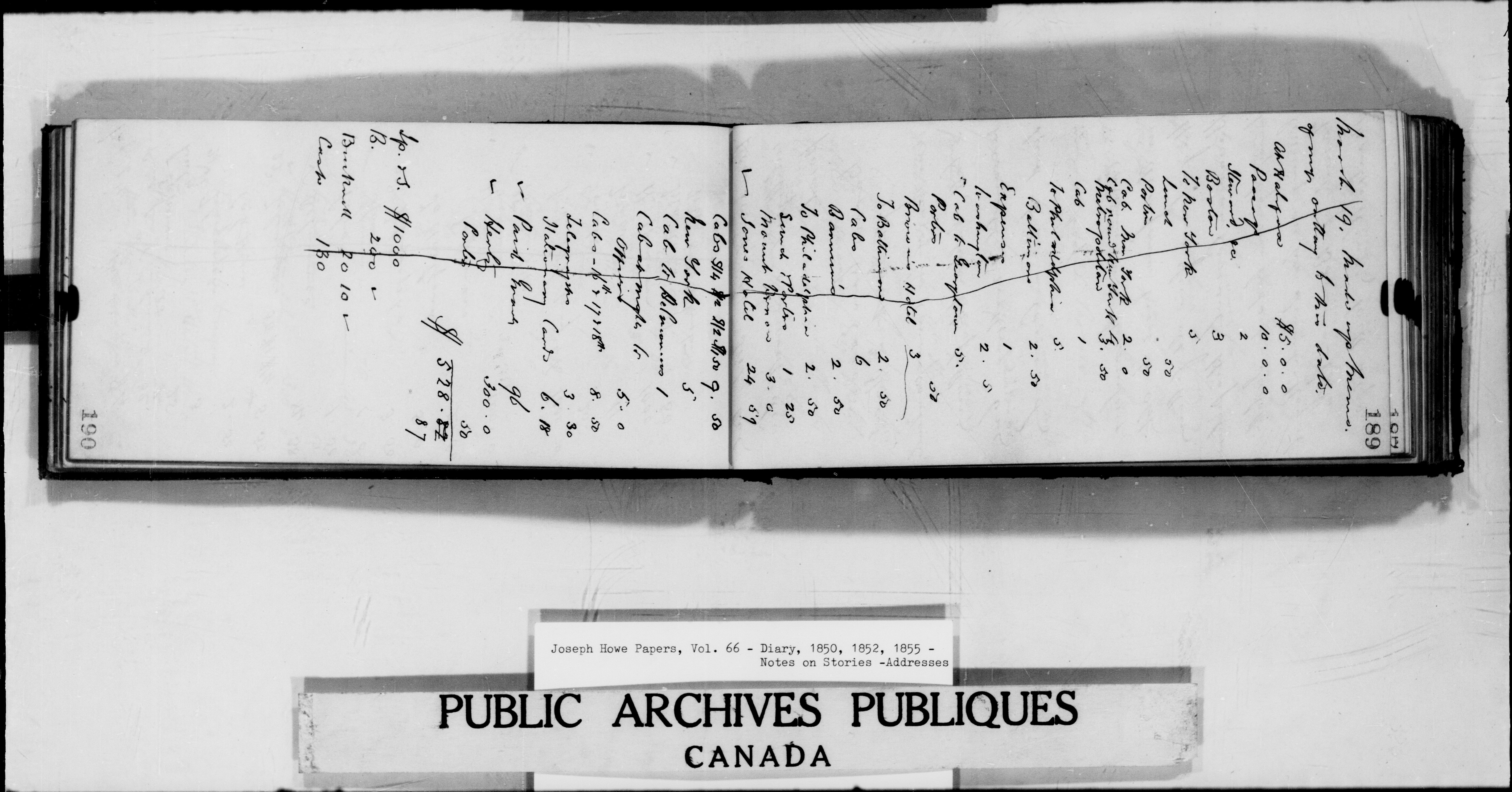 Joseph Howe diaries, memoranda and notebooks - 1365