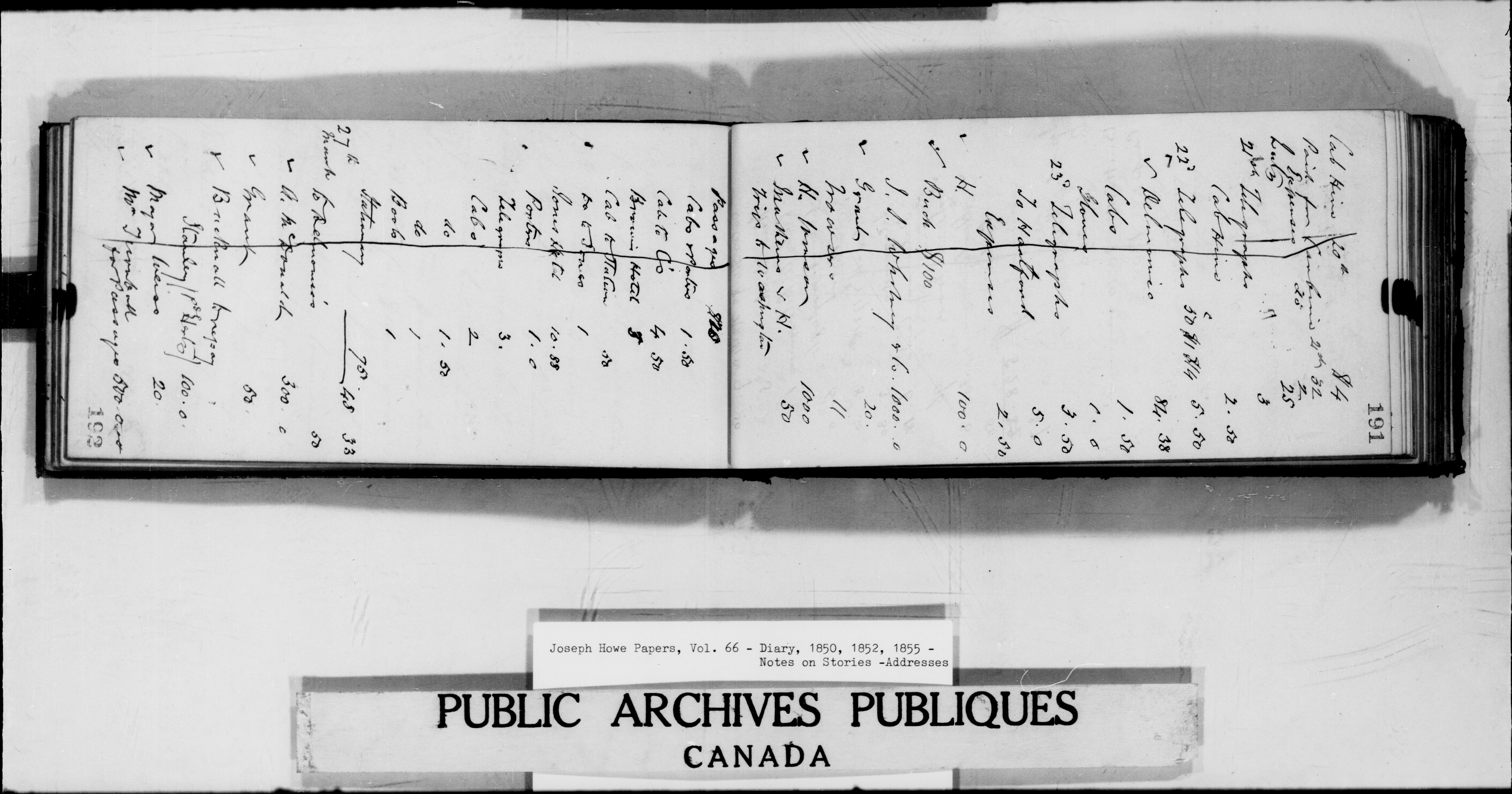 Joseph Howe diaries, memoranda and notebooks - 1365