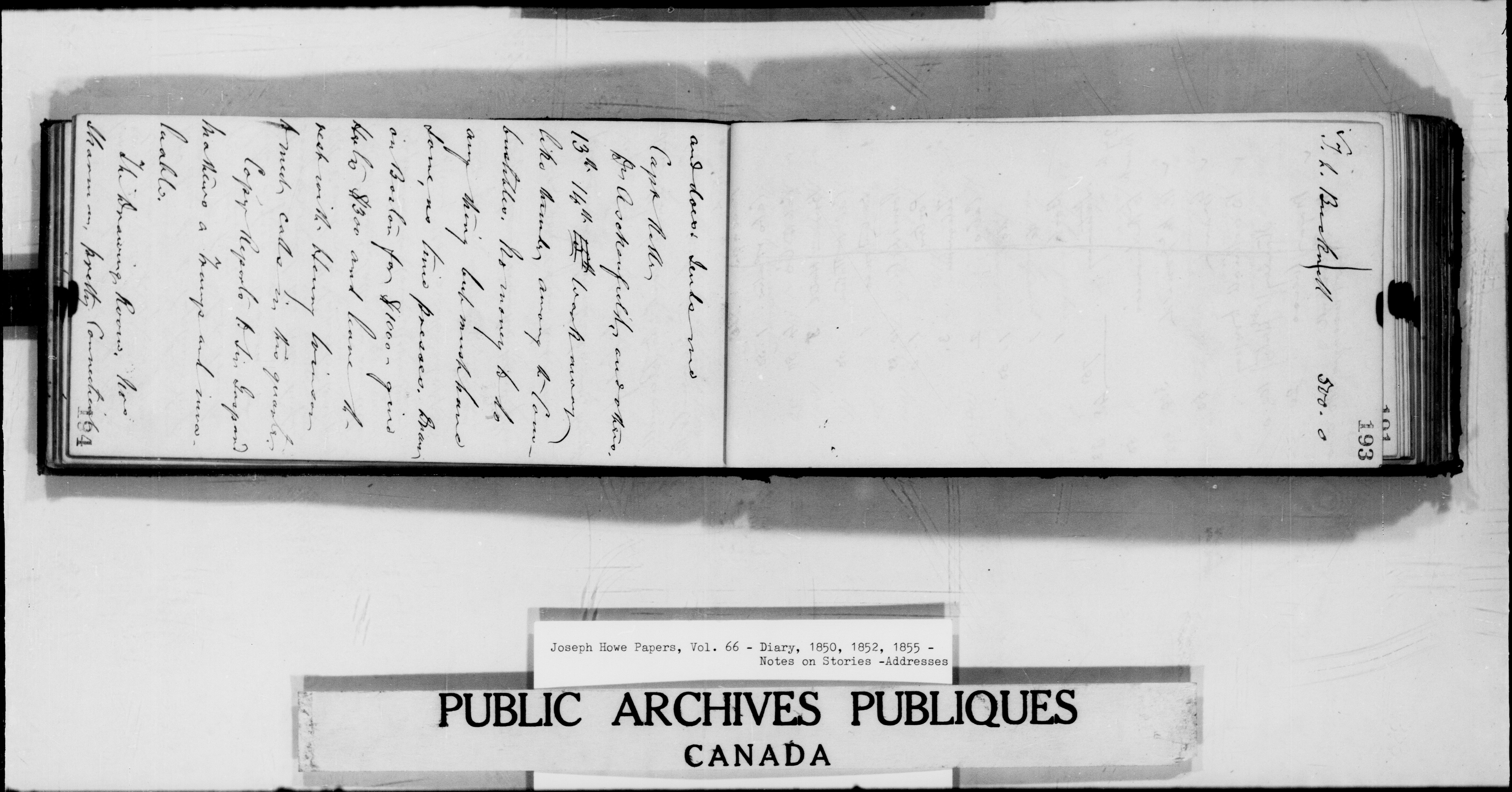 Joseph Howe diaries, memoranda and notebooks - 1365