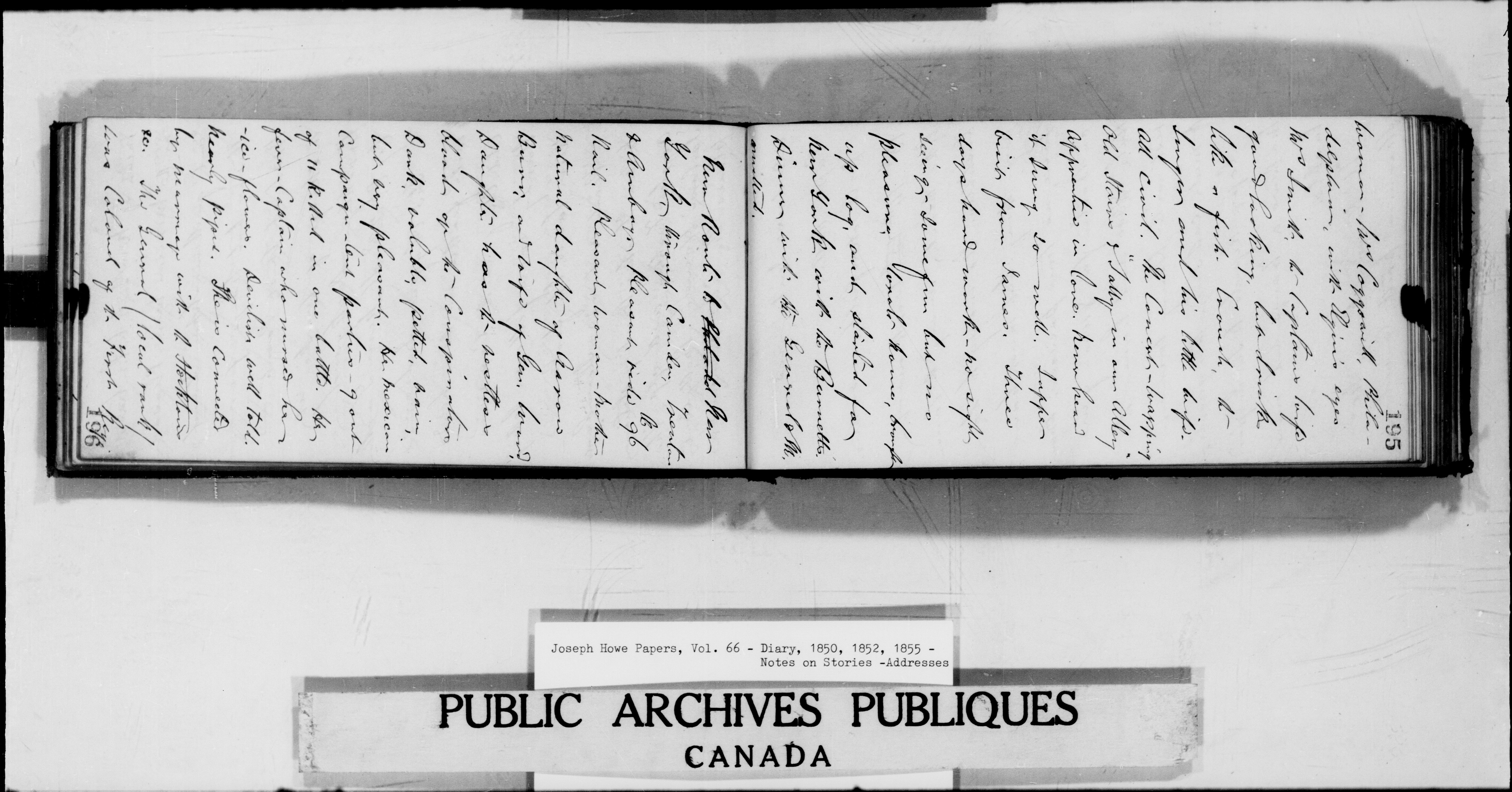 Joseph Howe diaries, memoranda and notebooks - 1365