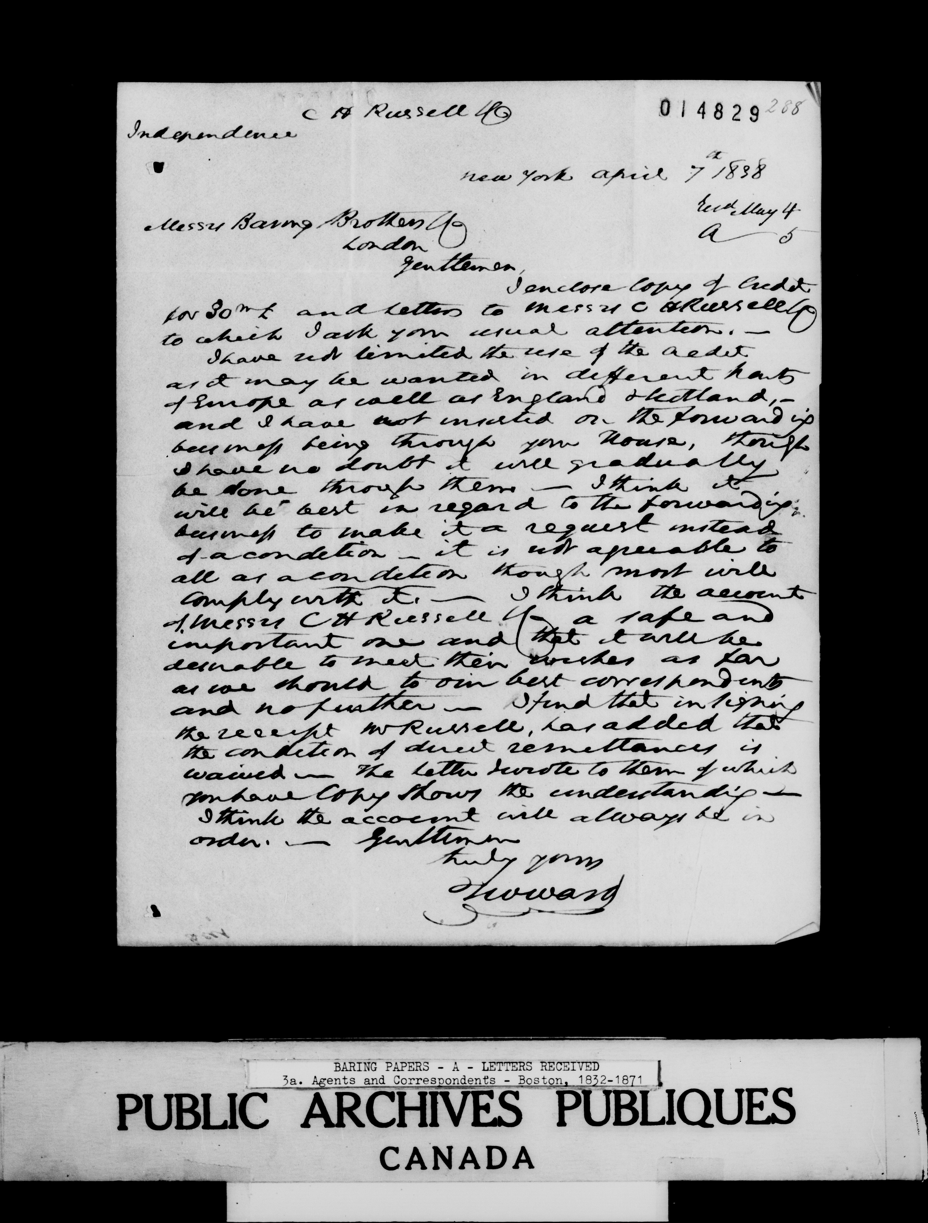 Baring Papers : Letters received - 1382
