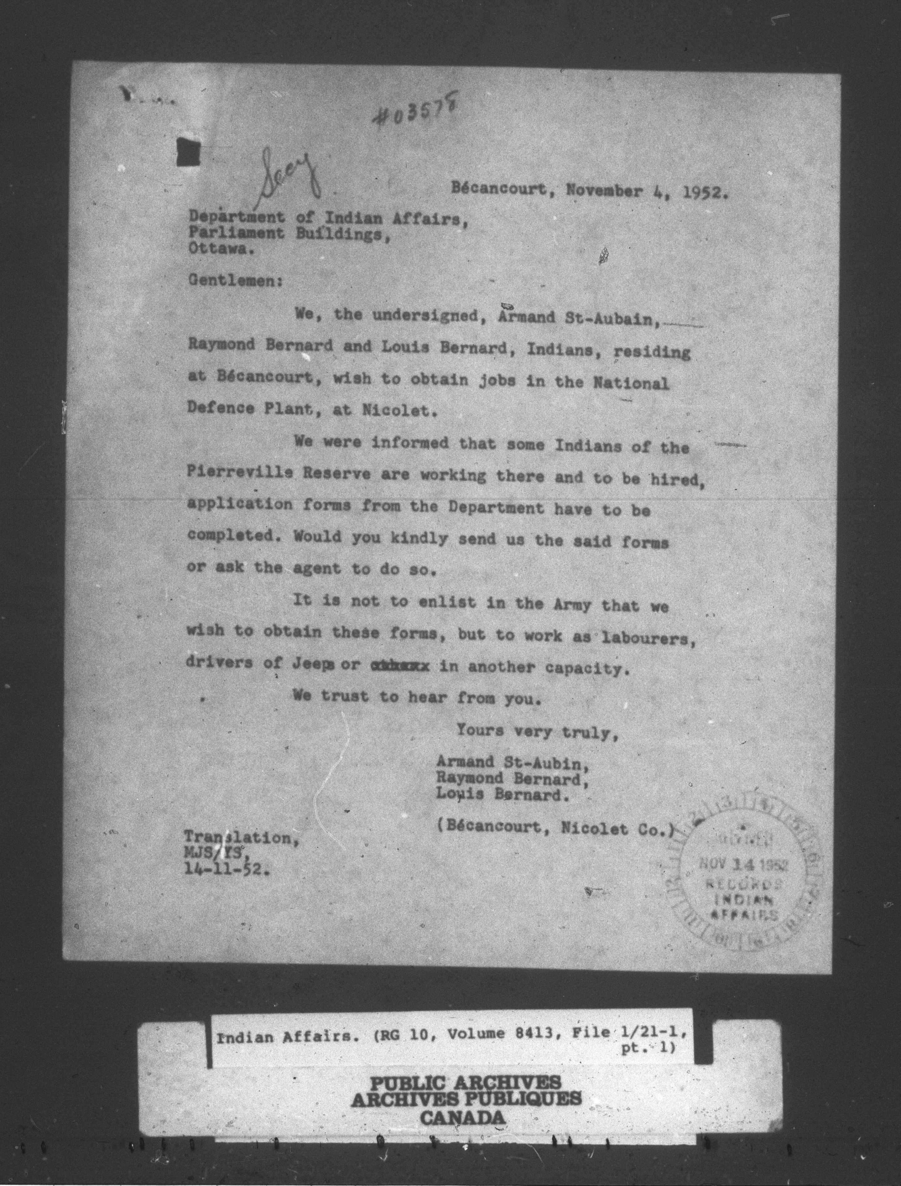 Indian and Inuit Affairs Program : Modified duplex numeric system : C-13830