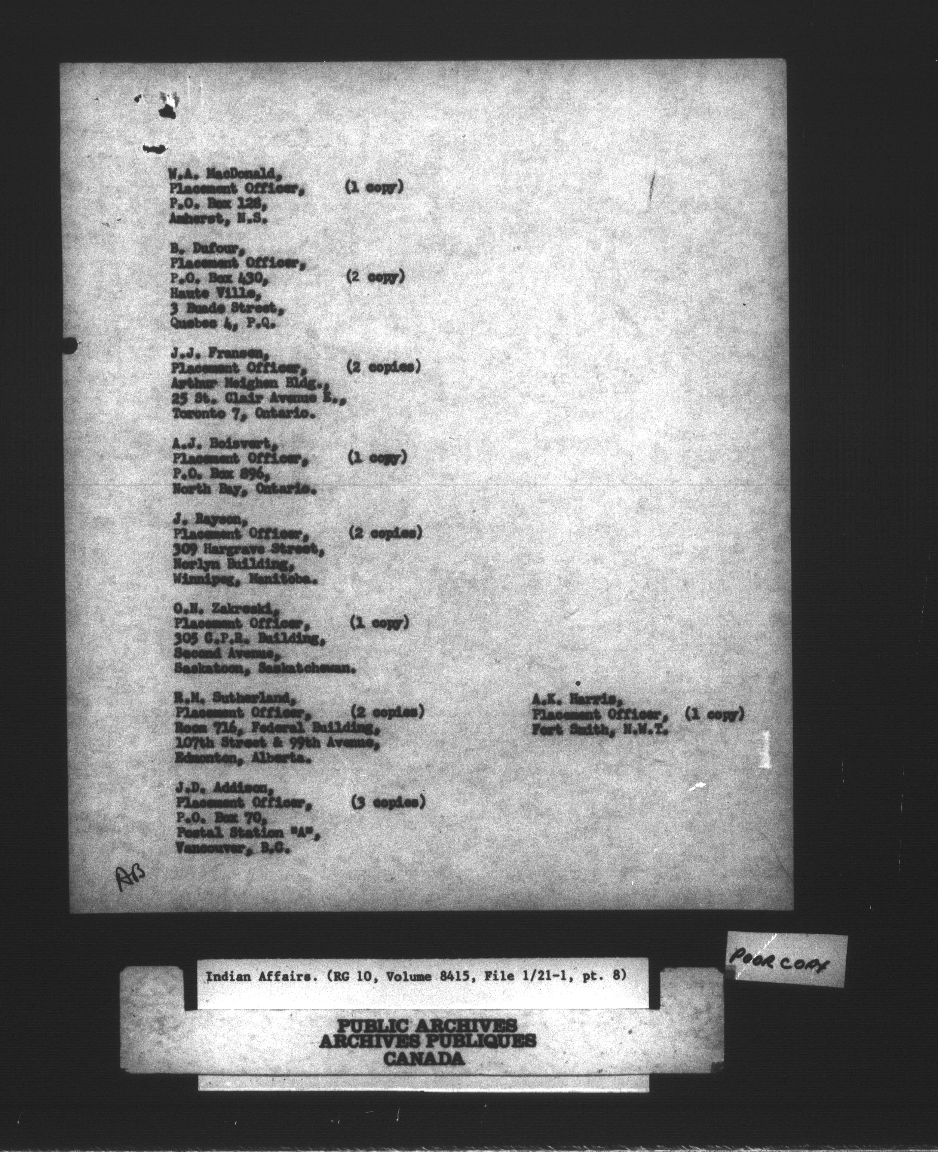 Indian and Inuit Affairs Program : Modified duplex numeric systemFort Smith Agency - 13832