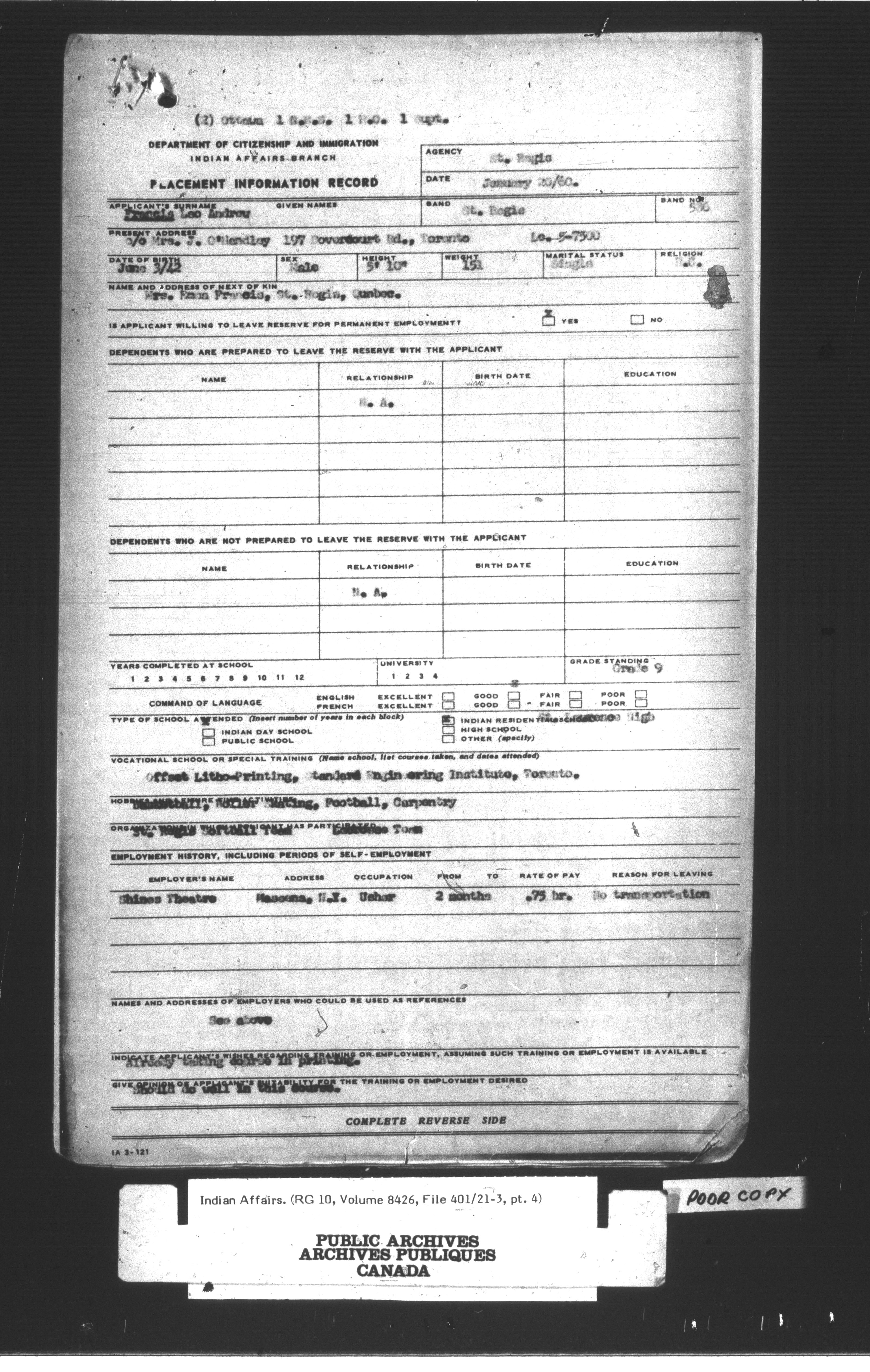 Indian and Inuit Affairs Program : Modified duplex numeric system - 13836