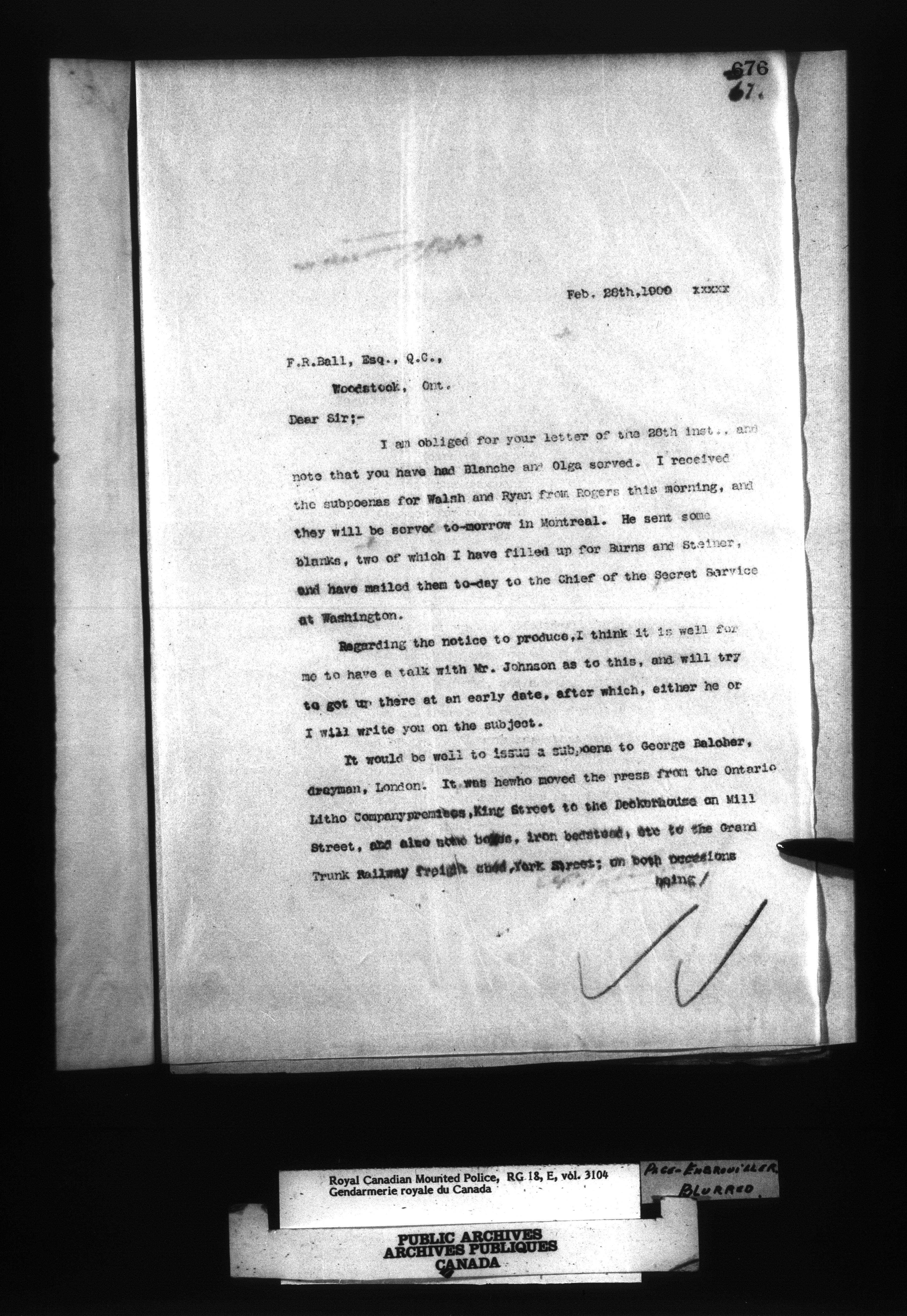 Dominion Police : Letterbooks, 1872-1910 - 13855