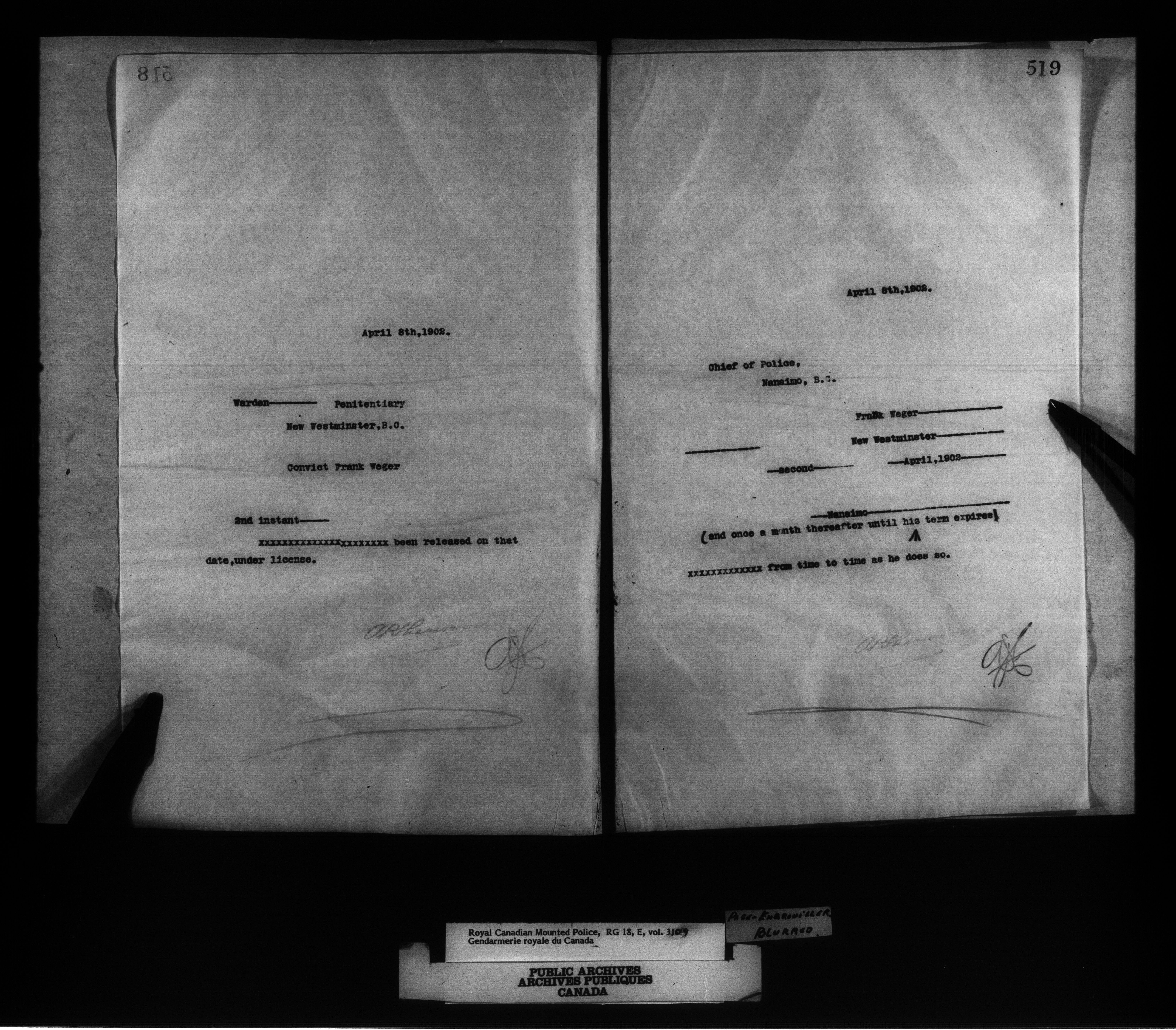 Dominion Police : Letterbooks, 1872-1910 - 13858