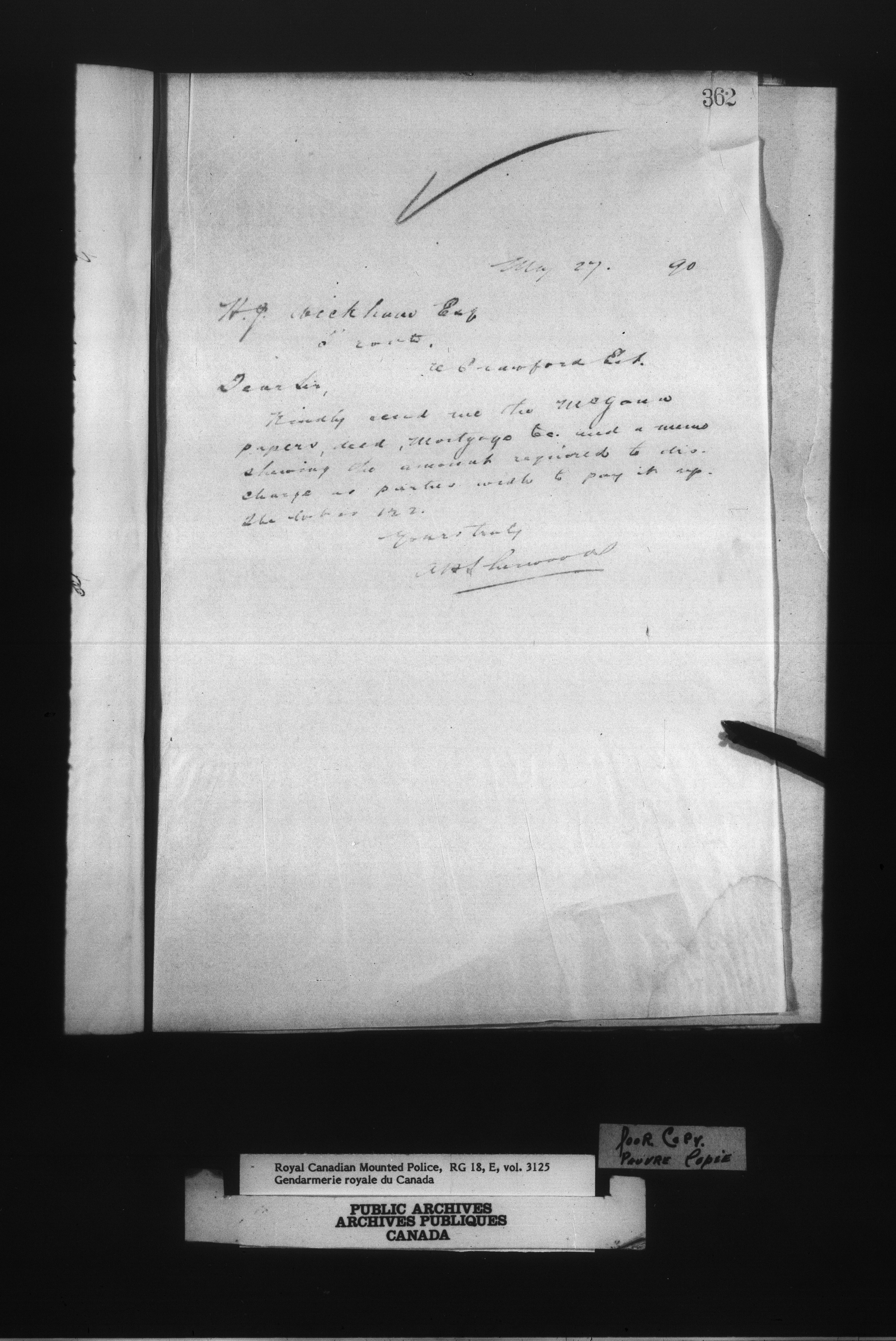 Letterbooks of A.P. Sherwood, Chief Commissioner of the Dominion Police - 13872