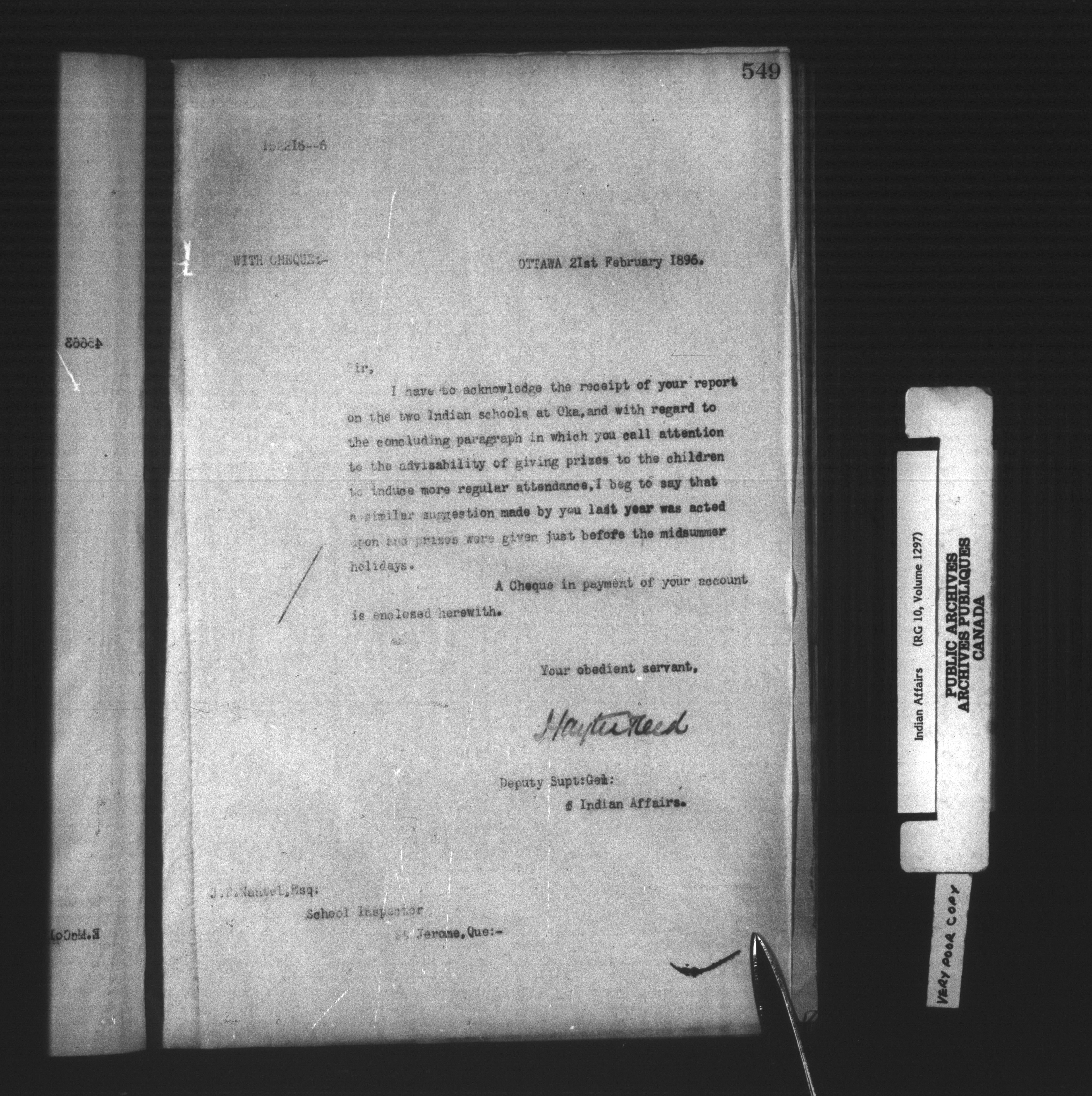 Department of Indian Affairs. School Branch : letterbooks : C-13906