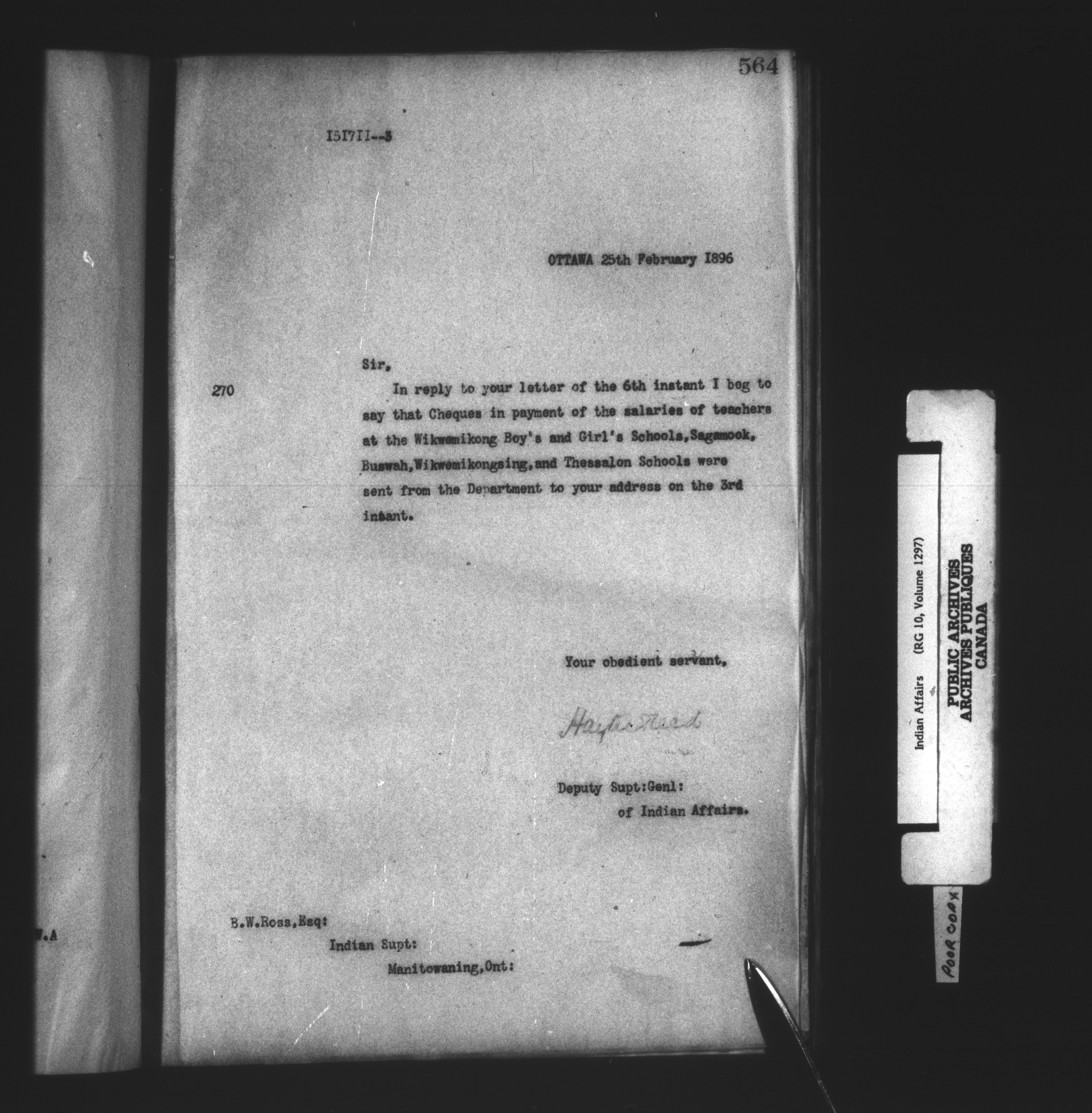 Department of Indian Affairs. School Branch : letterbooks : C-13906