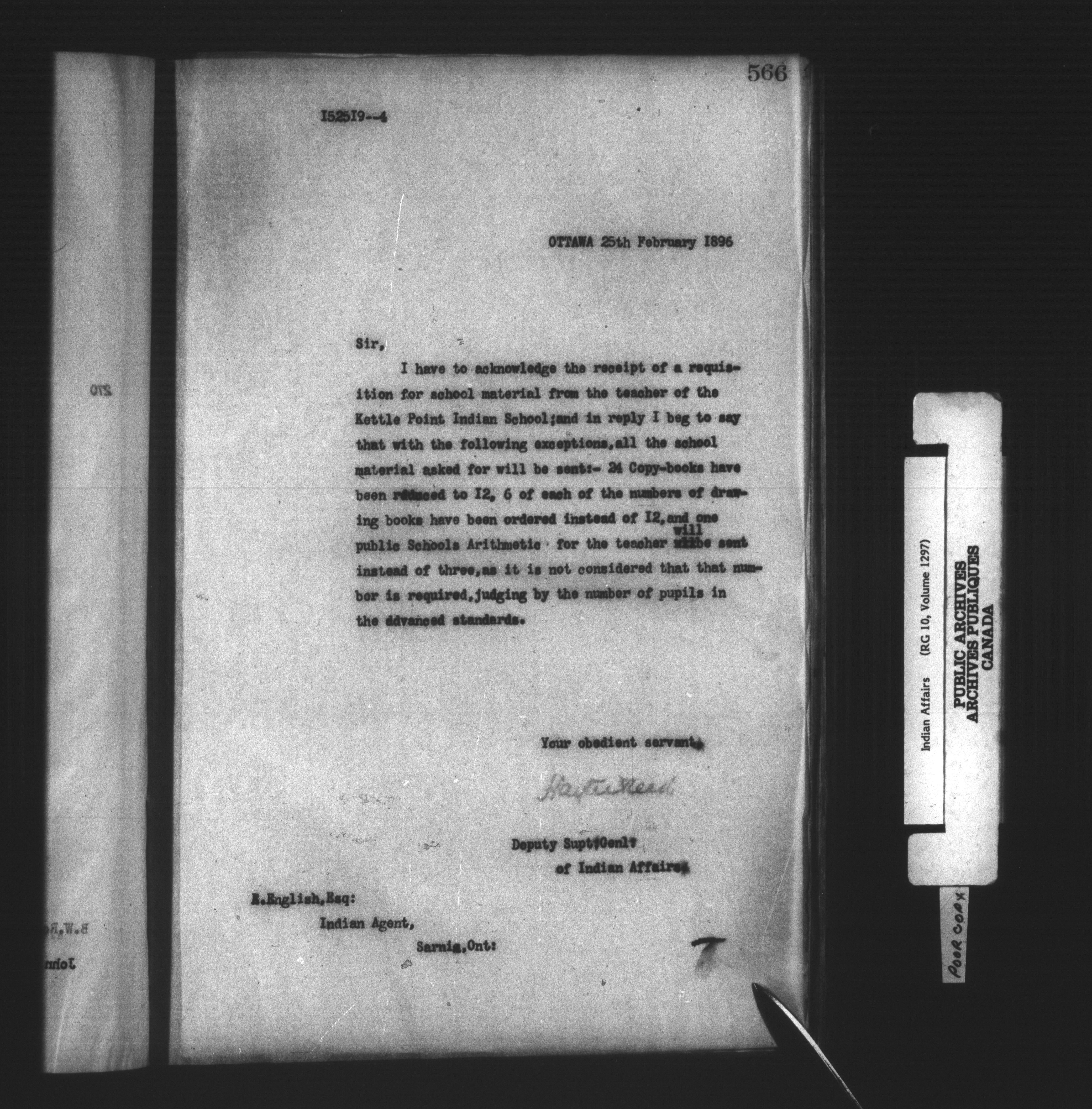 Department of Indian Affairs. School Branch : letterbooks : C-13906