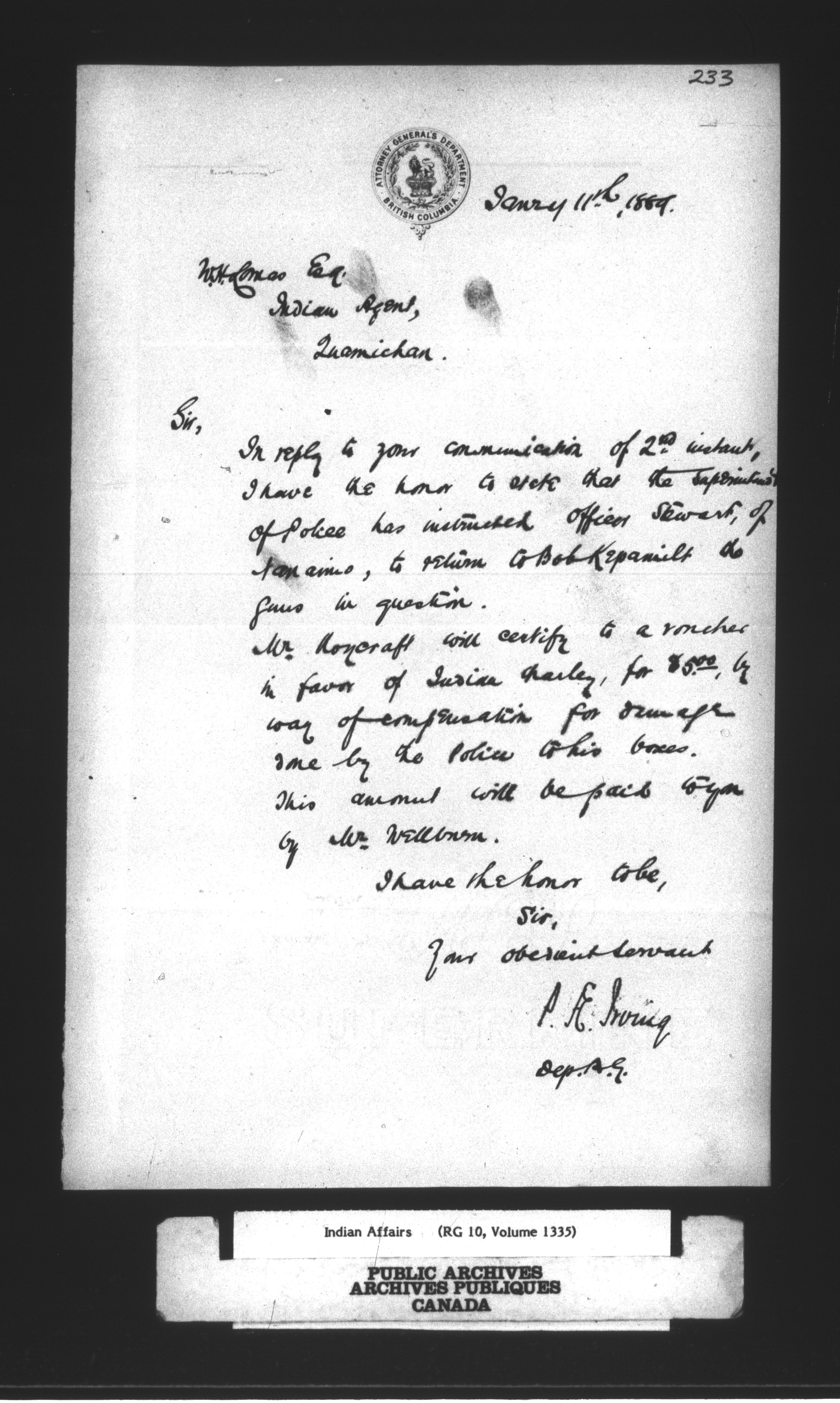 Department of Indian Affairs : Cowichan Agency : C-13914