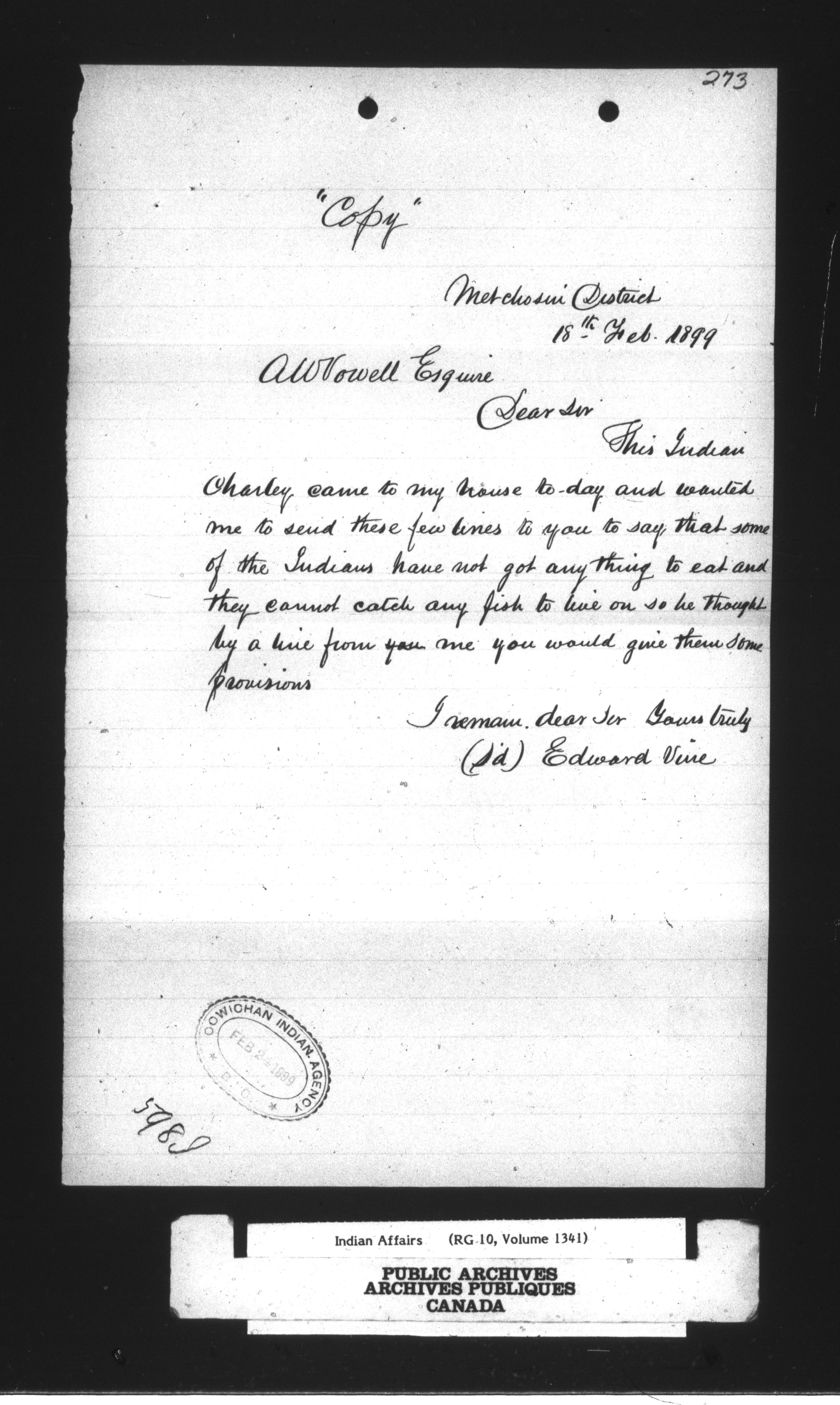 Department of Indian Affairs : Cowichan Agency - 13915