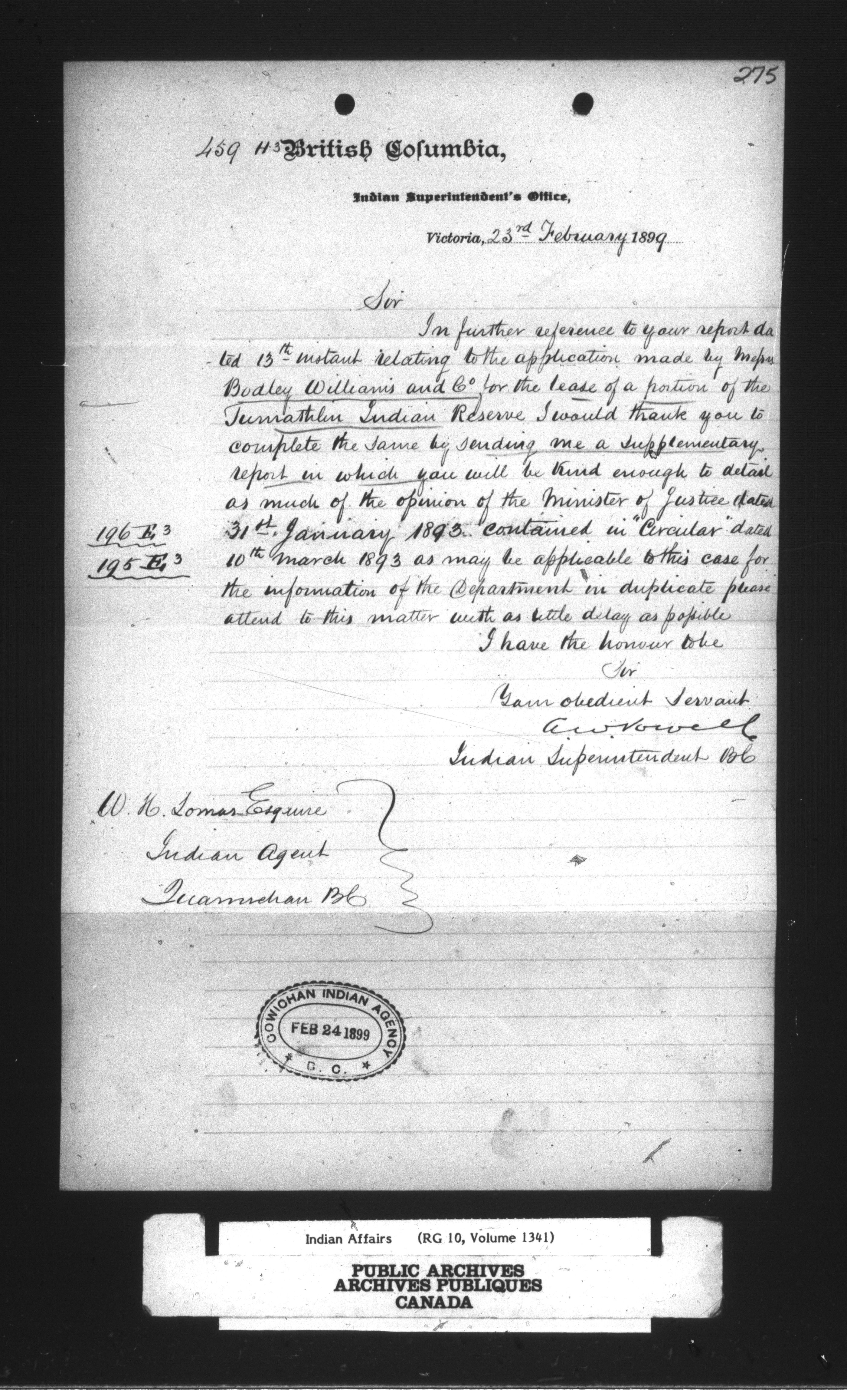 Department of Indian Affairs : Cowichan Agency : C-13915