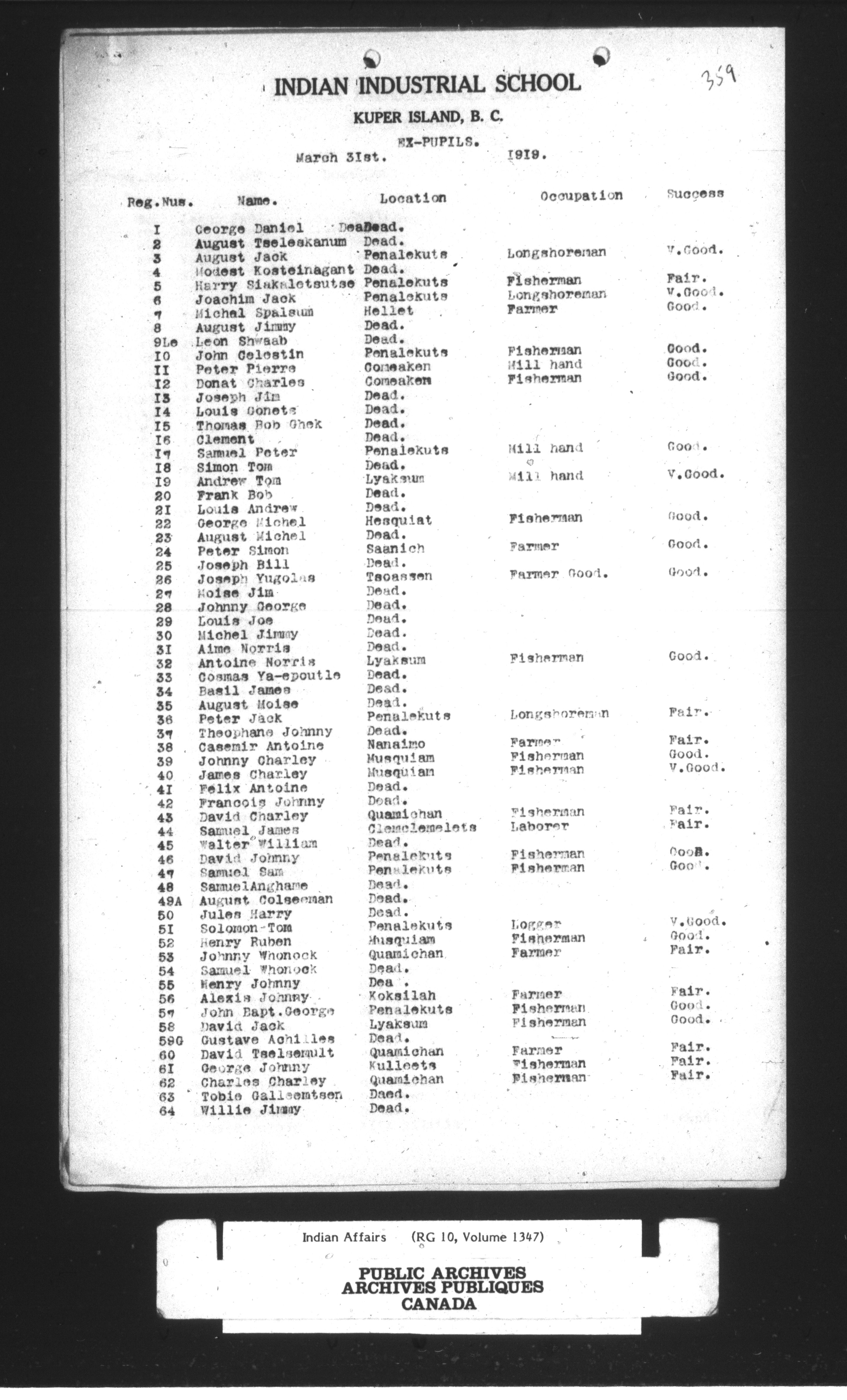 Department of Indian Affairs : Cowichan Agency - 13916