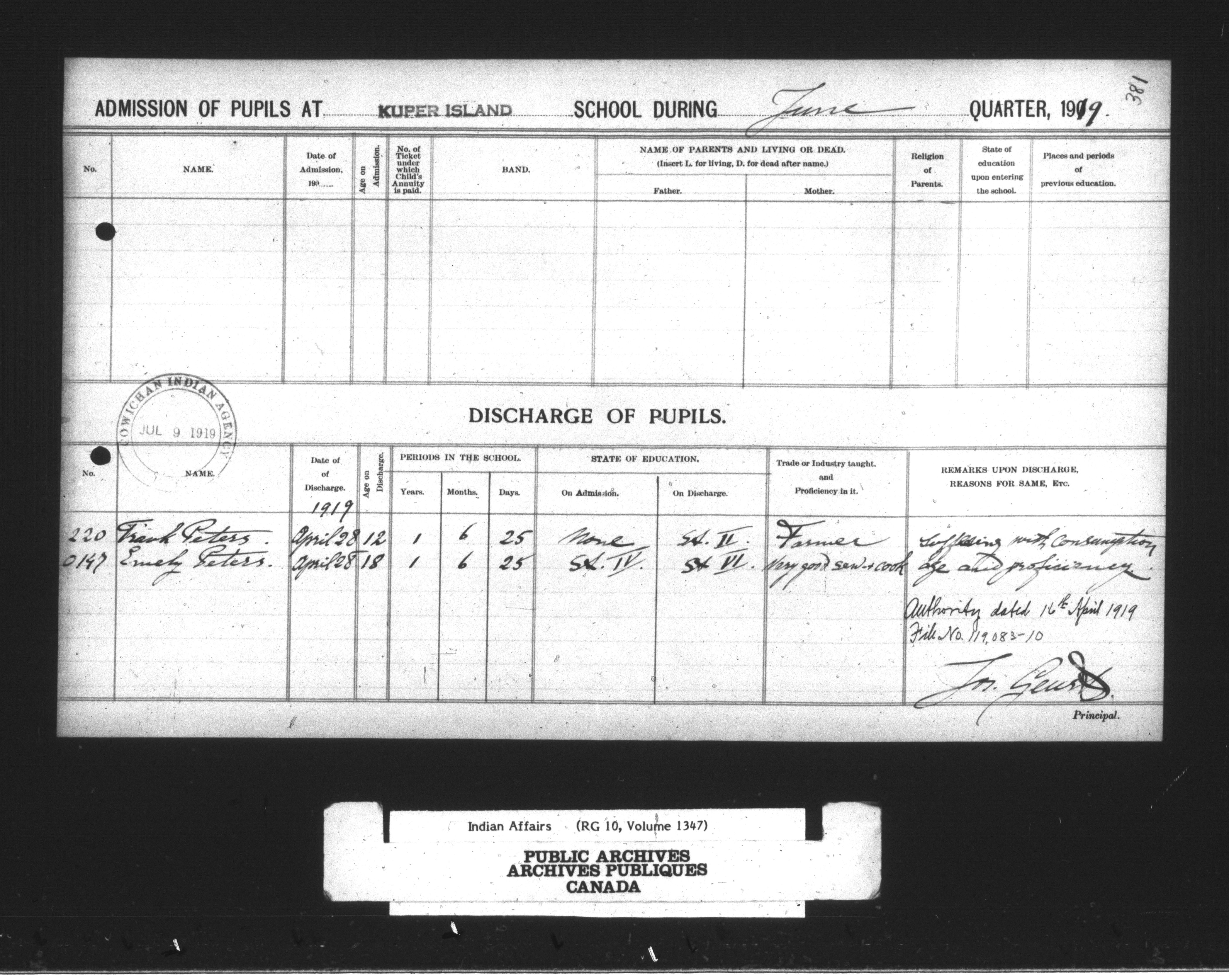 Department of Indian Affairs : Cowichan Agency - 13916