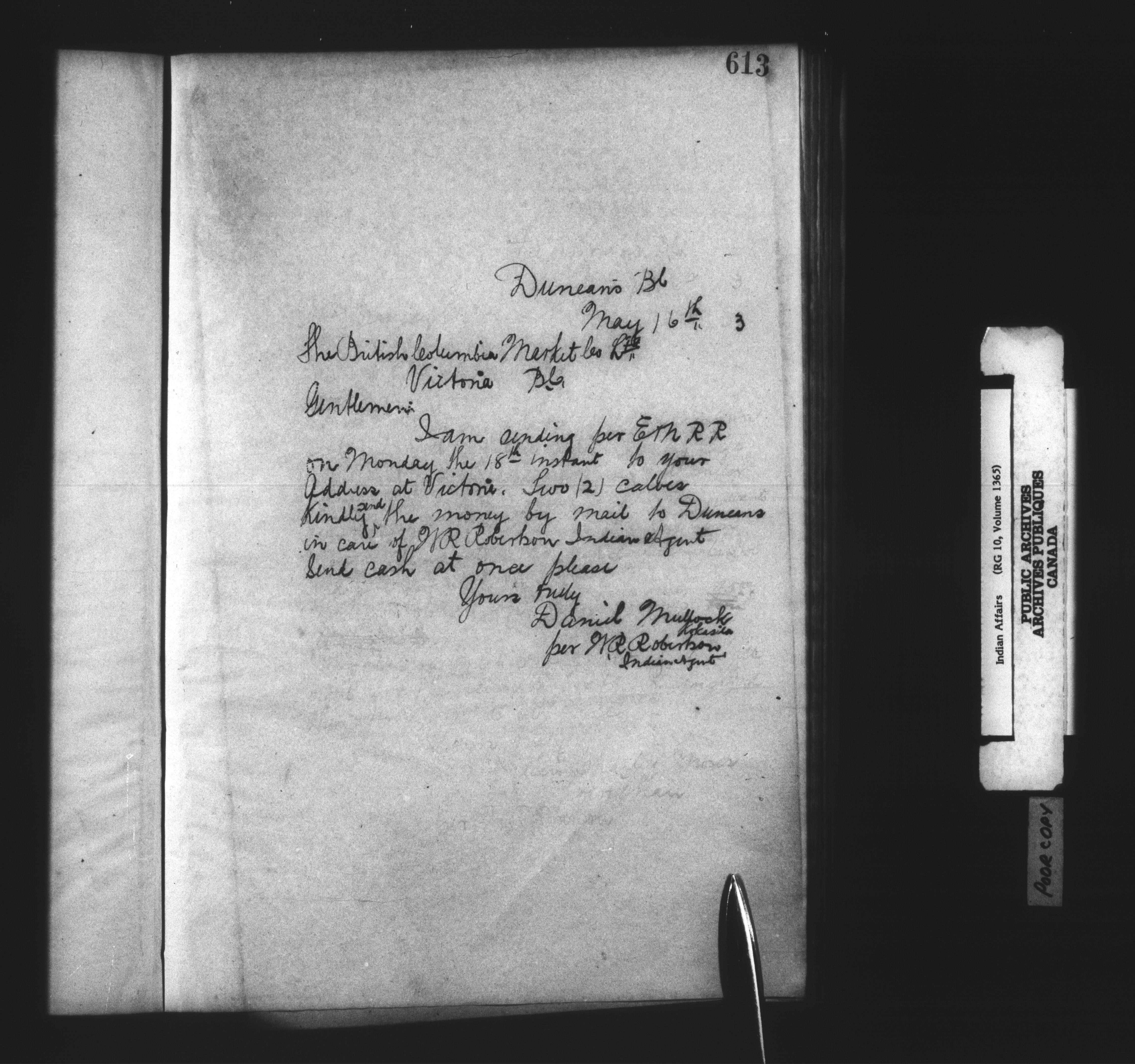 Department of Indian Affairs : Cowichan Agency : C-13925