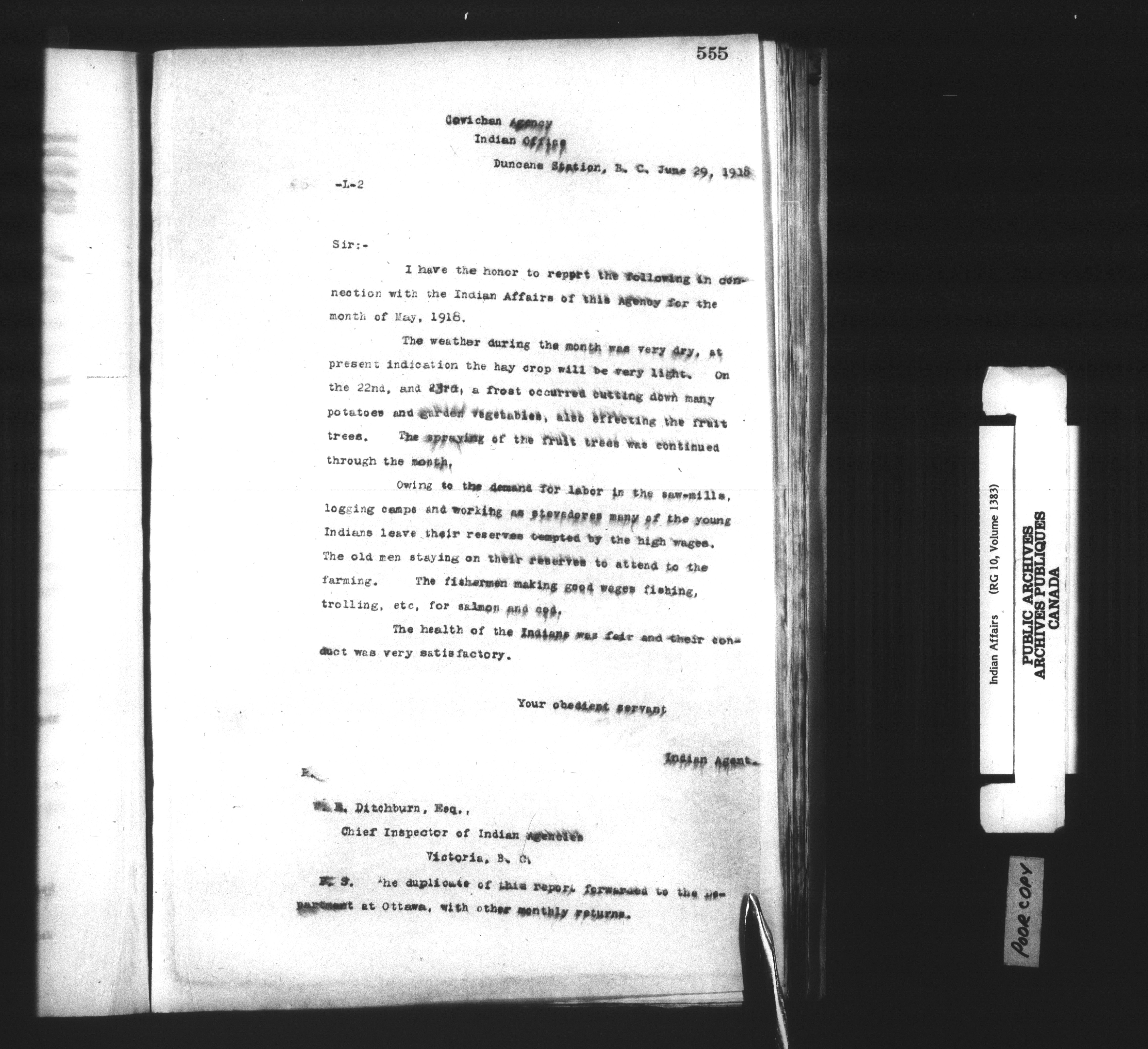 Department of Indian Affairs : Cowichan Agency : C-13930
