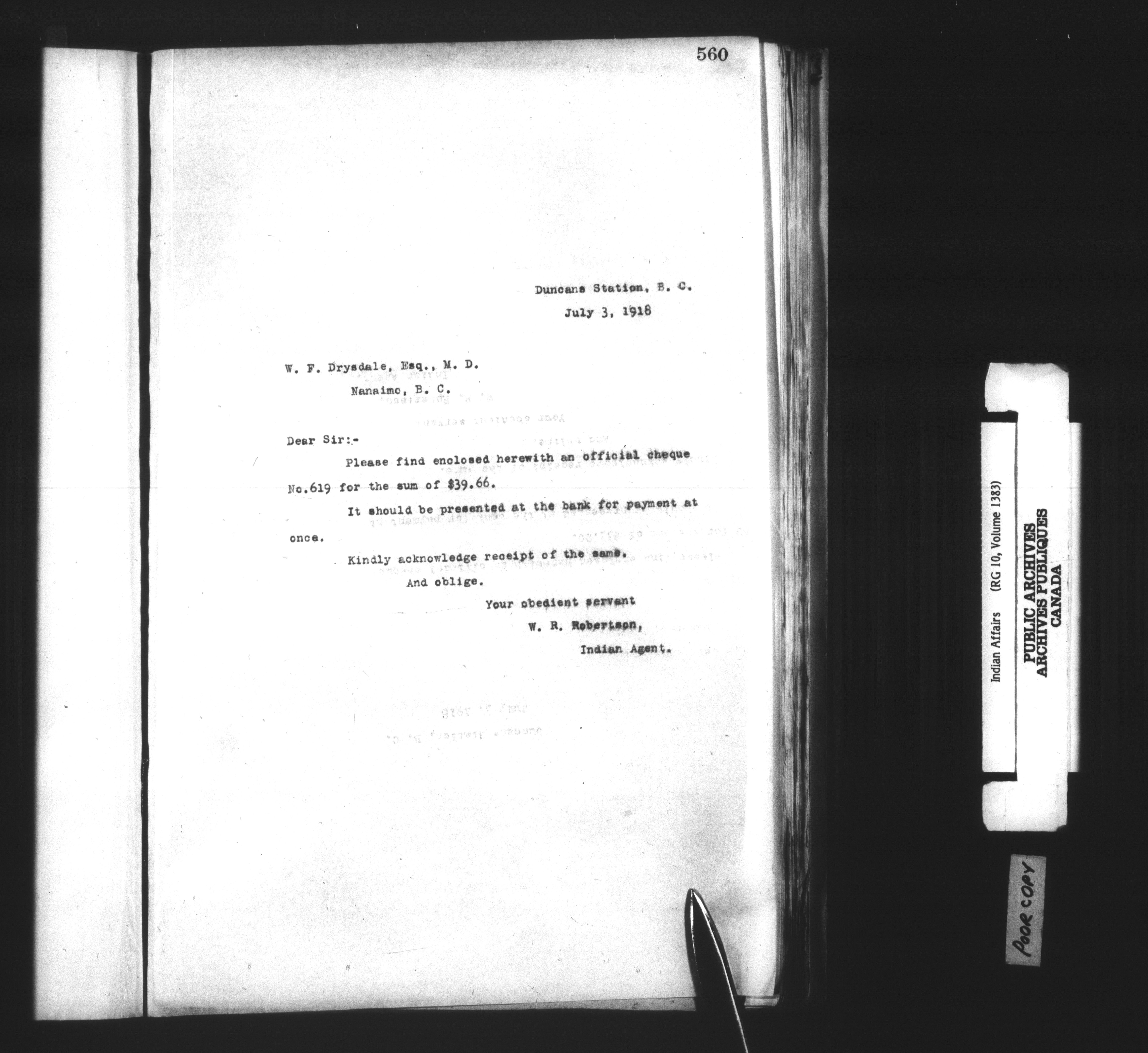 Department of Indian Affairs : Cowichan Agency - 13930