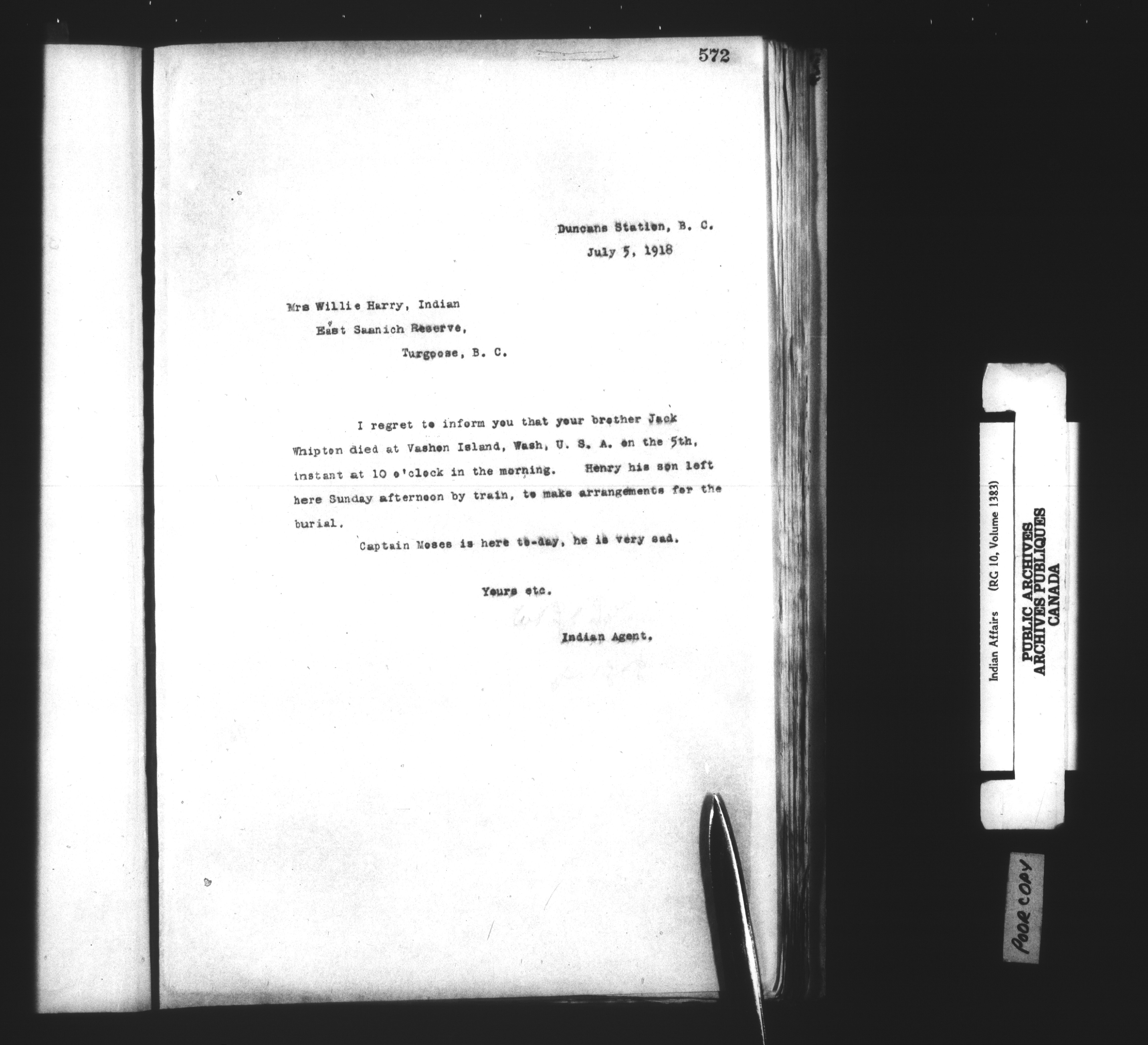 Department of Indian Affairs : Cowichan Agency - 13930