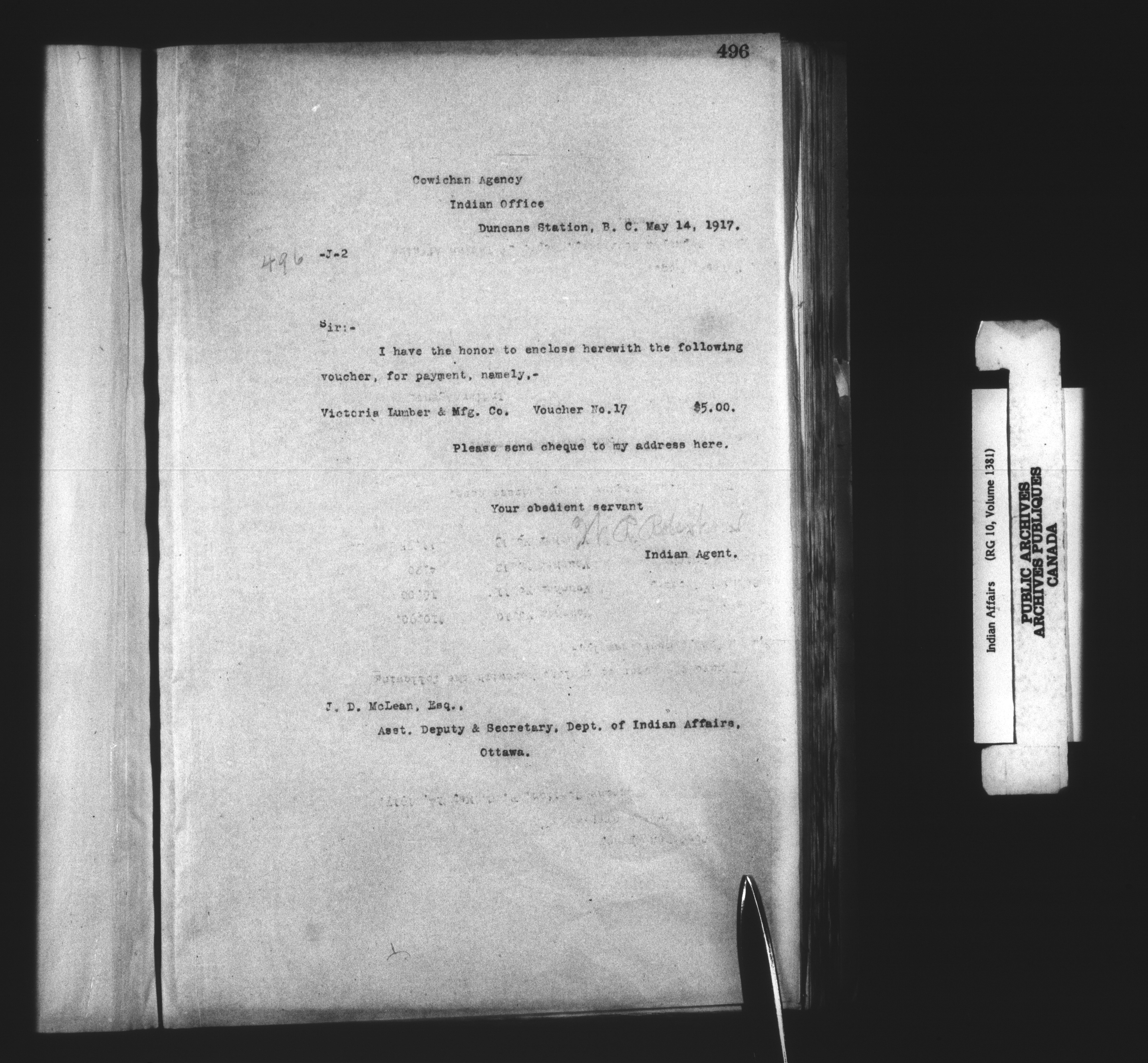 Department of Indian Affairs : Cowichan Agency : C-13930