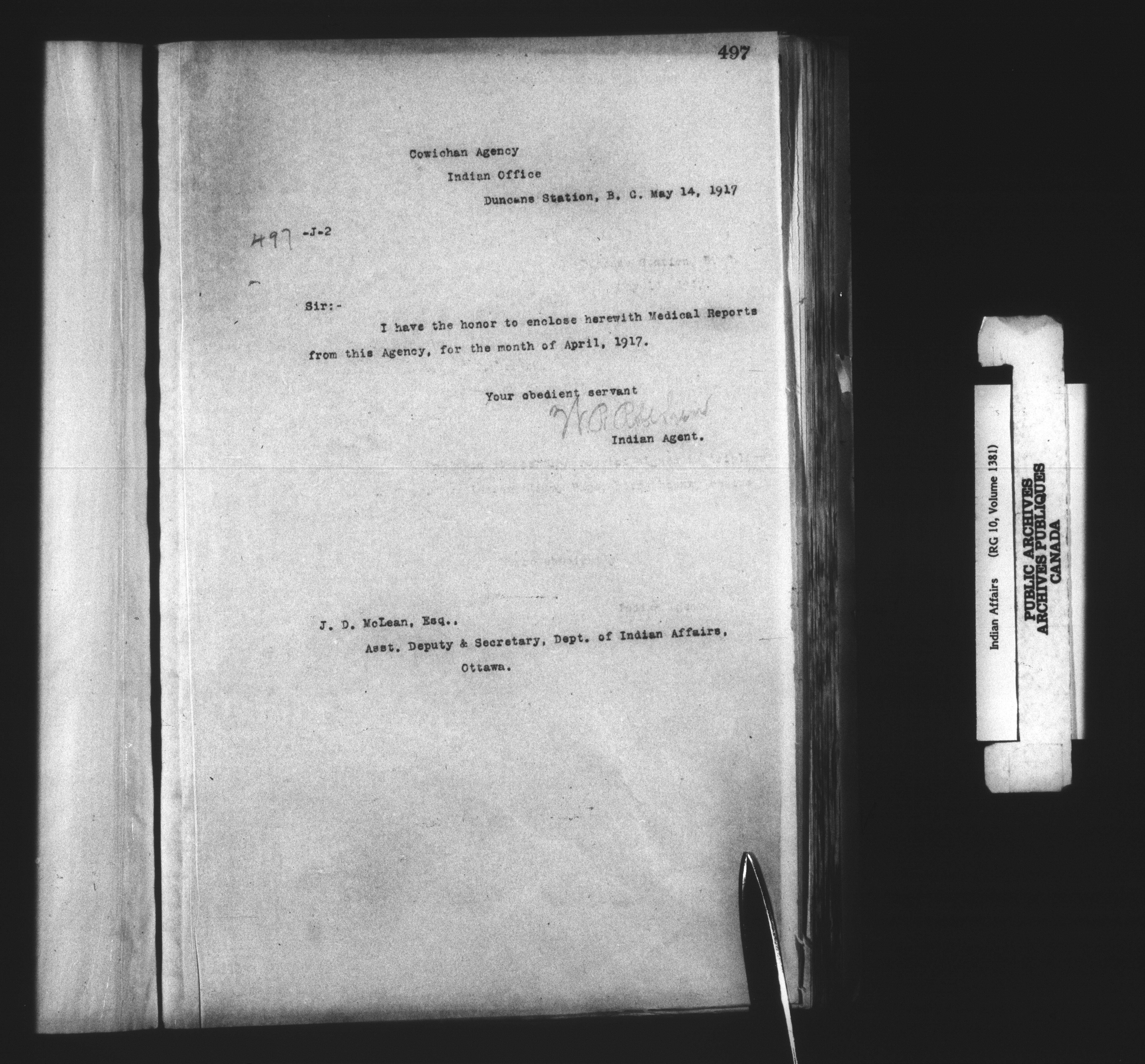 Department of Indian Affairs : Cowichan Agency : C-13930