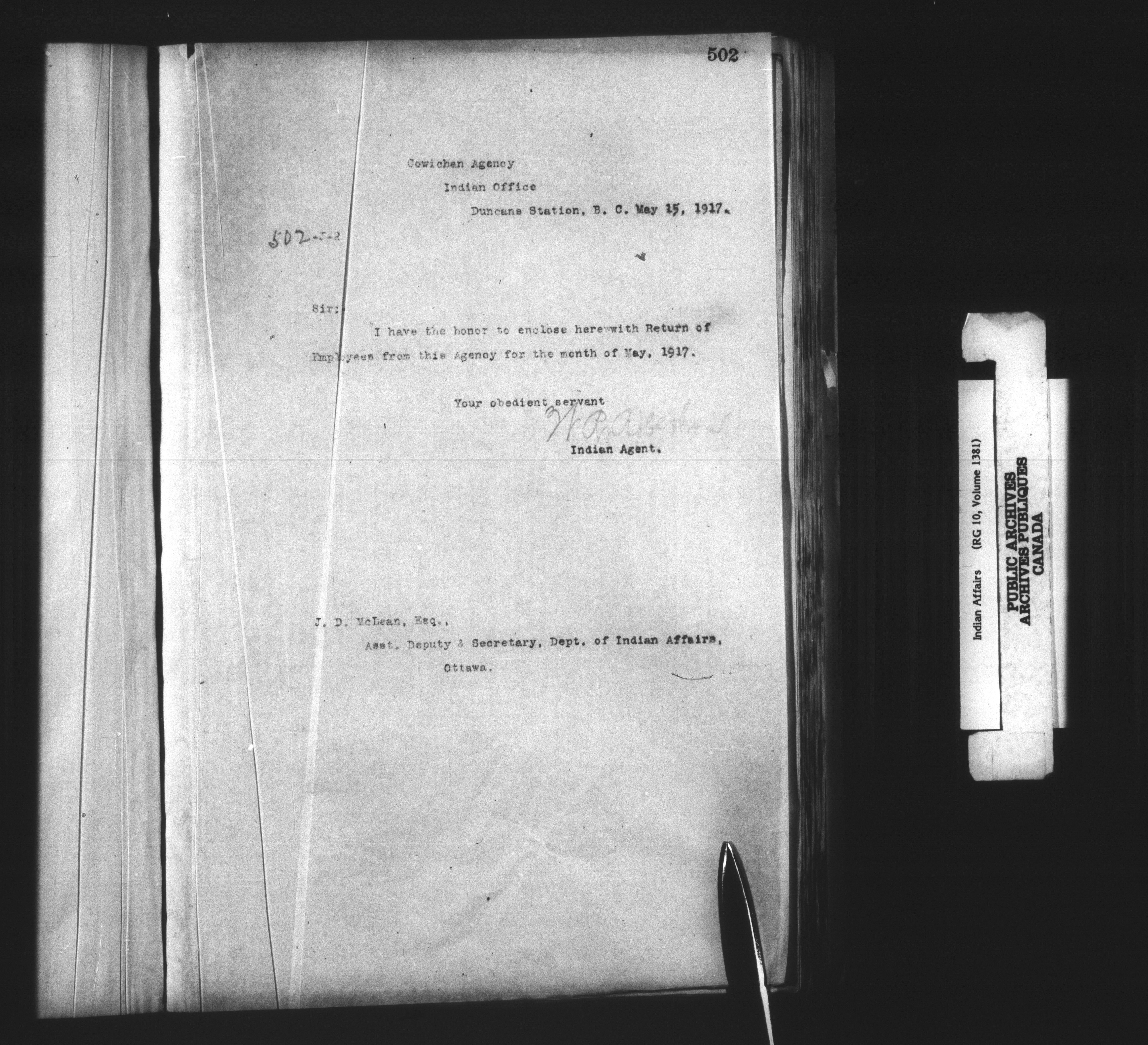 Department of Indian Affairs : Cowichan Agency - 13930