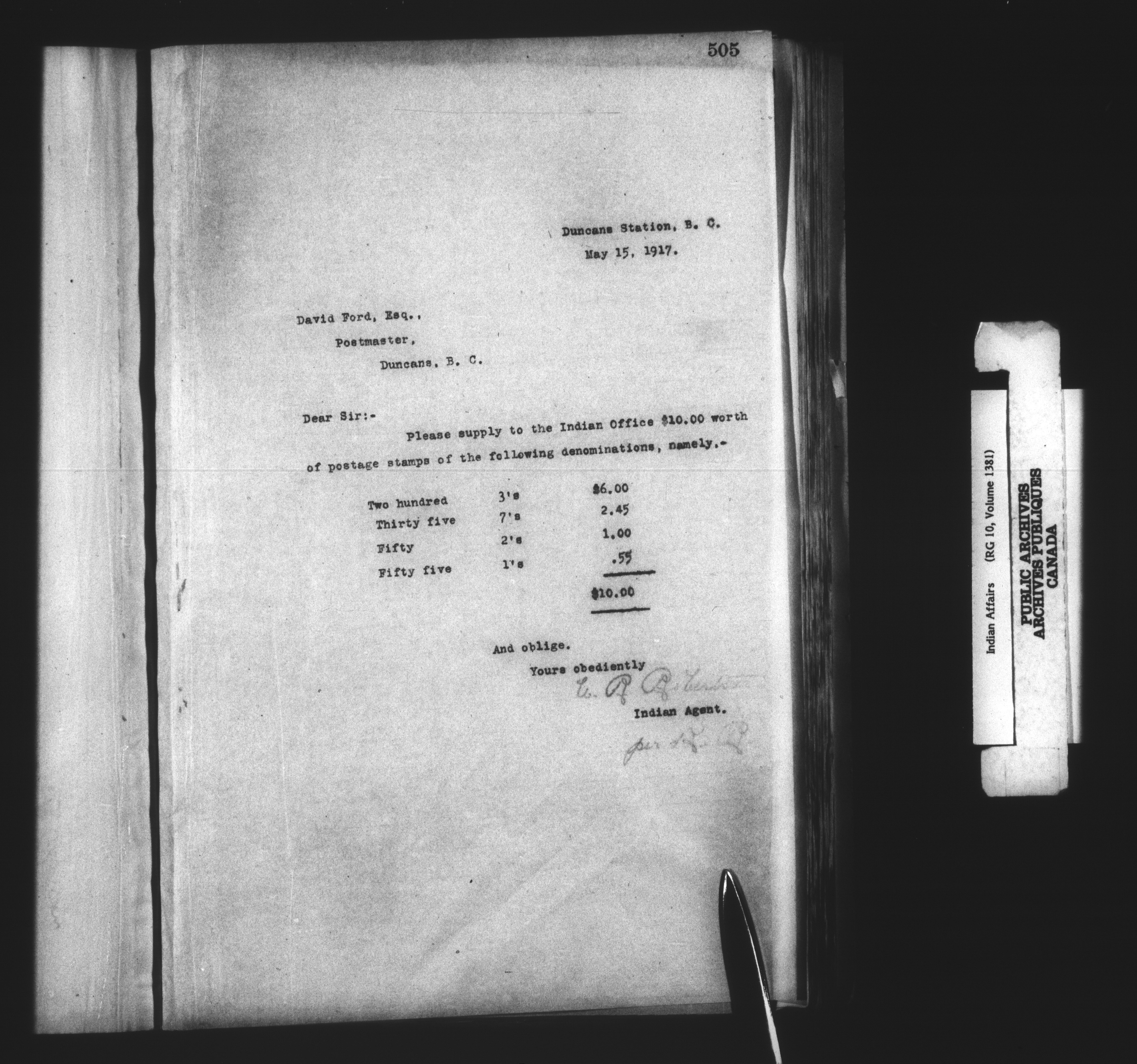 Department of Indian Affairs : Cowichan Agency - 13930