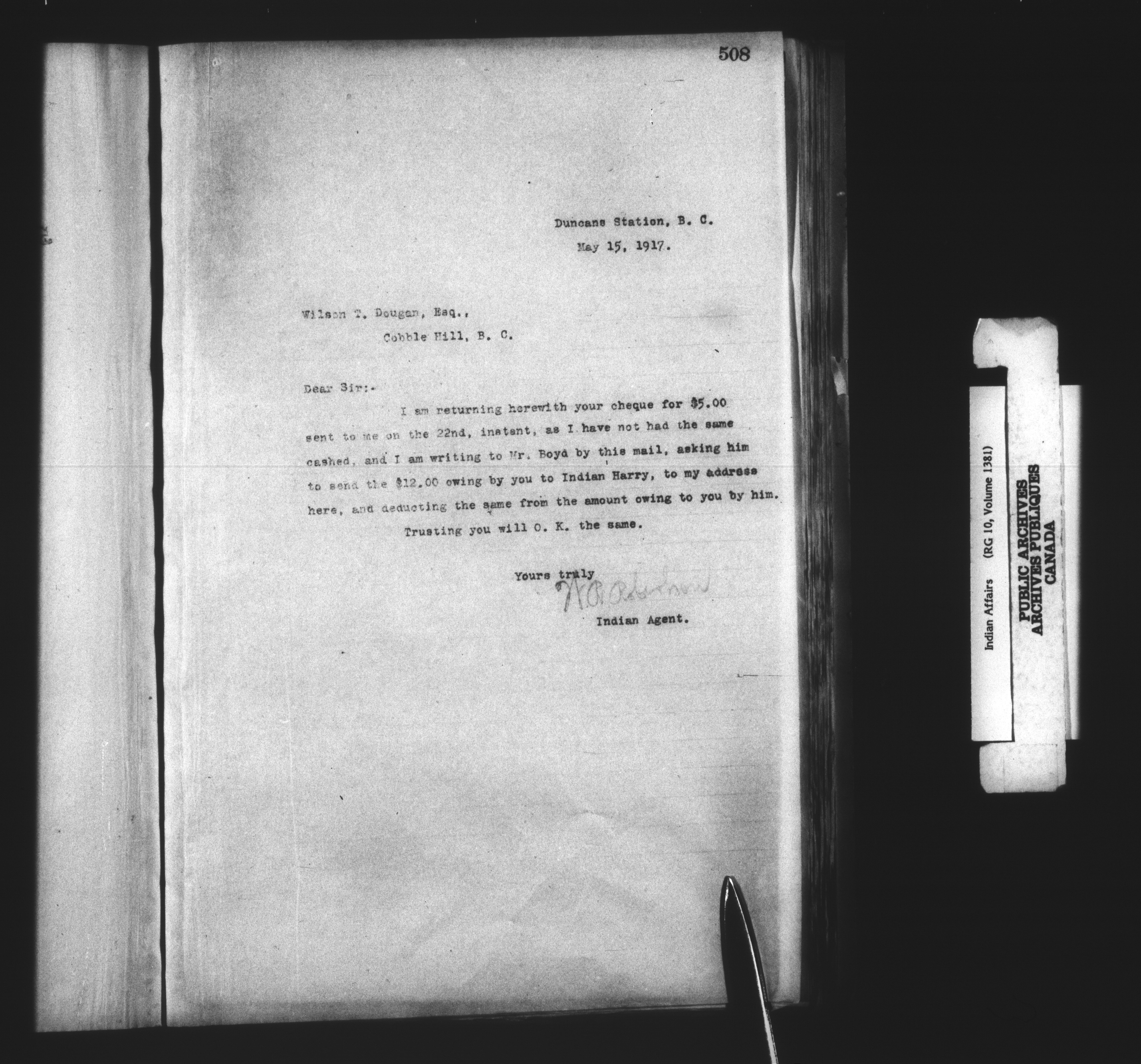 Department of Indian Affairs : Cowichan Agency - 13930