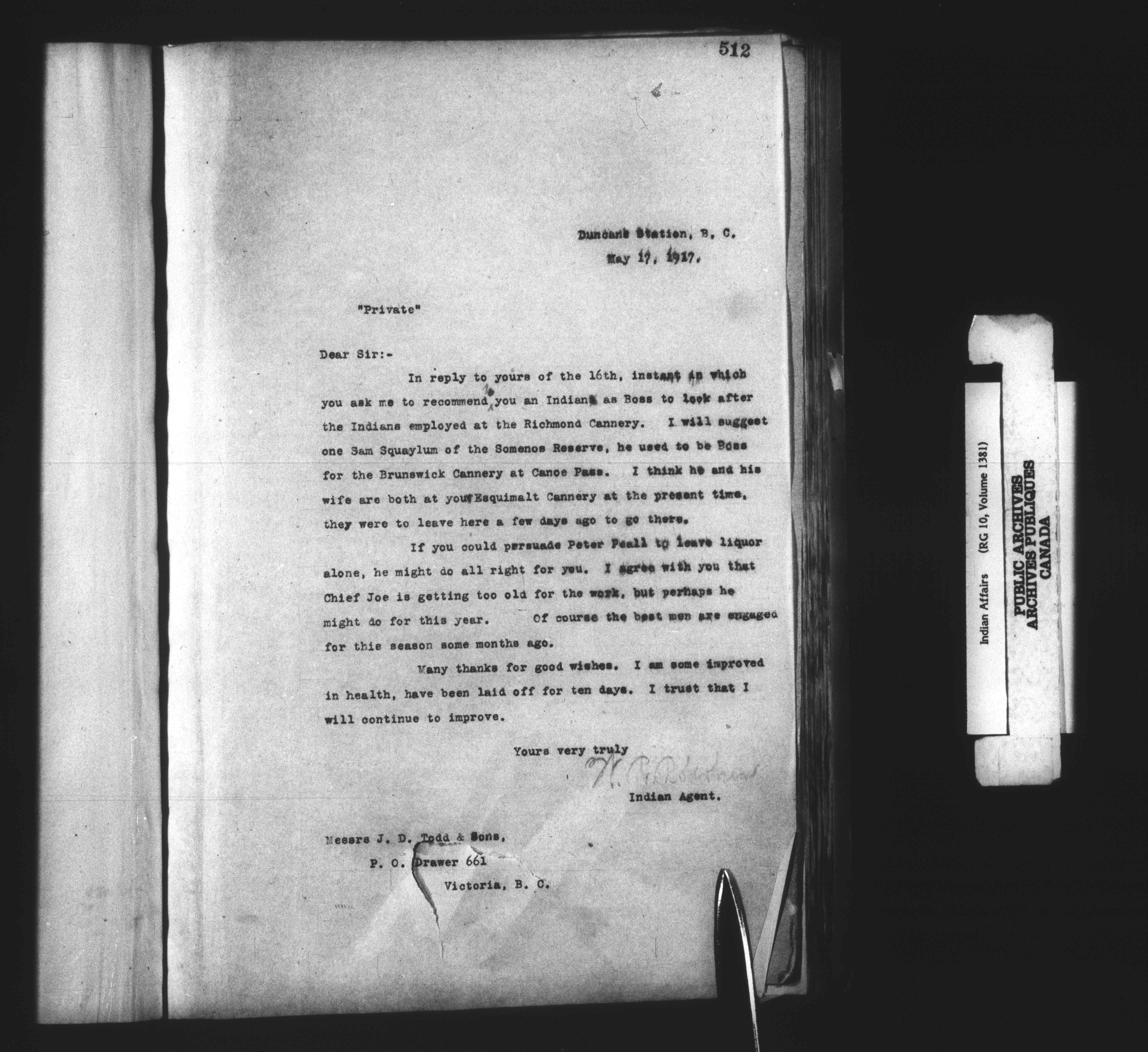 Department of Indian Affairs : Cowichan Agency : C-13930
