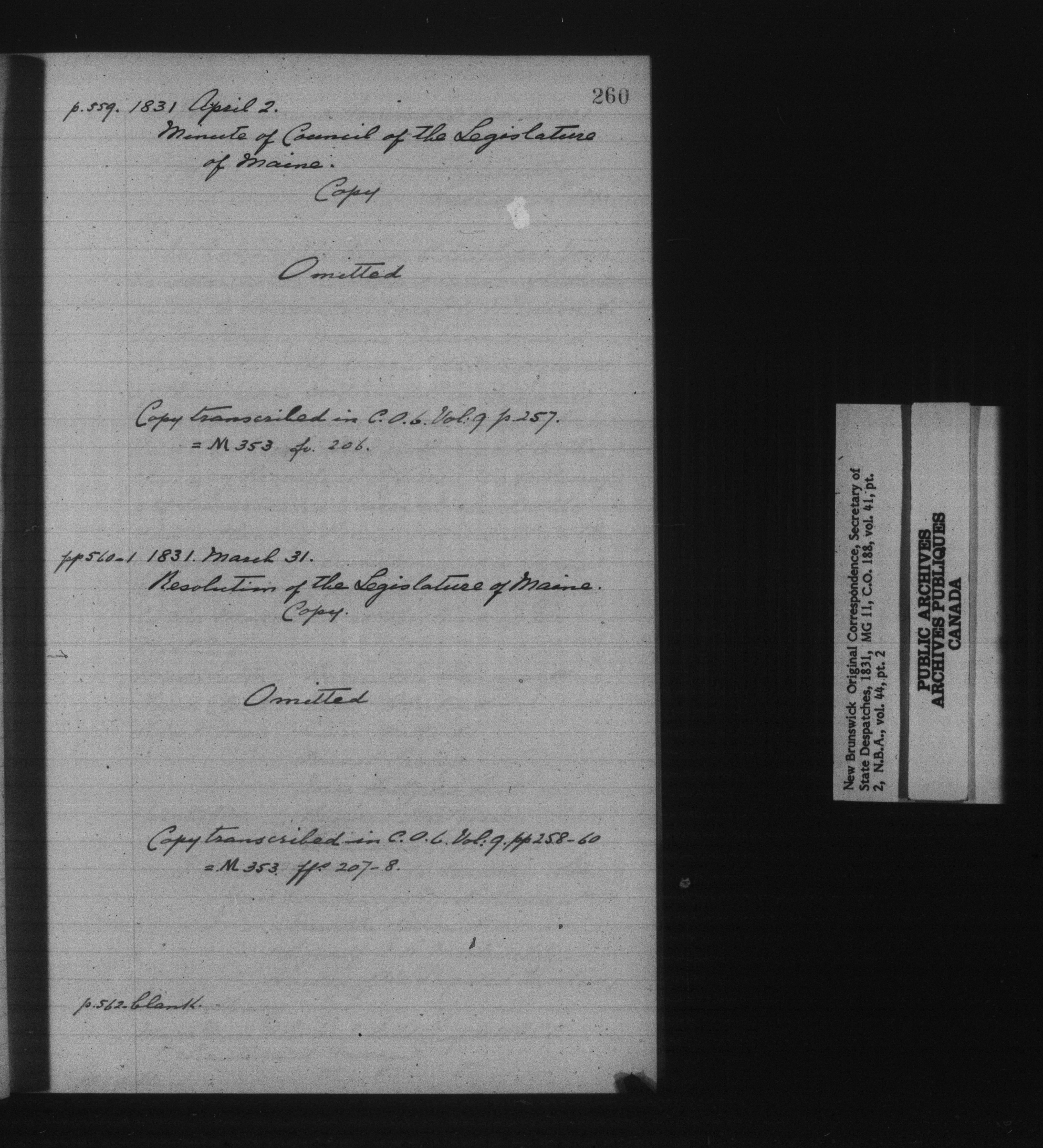 Great Britain. Colonial Office : New Brunswick original correspondence (CO 188) : C-13949